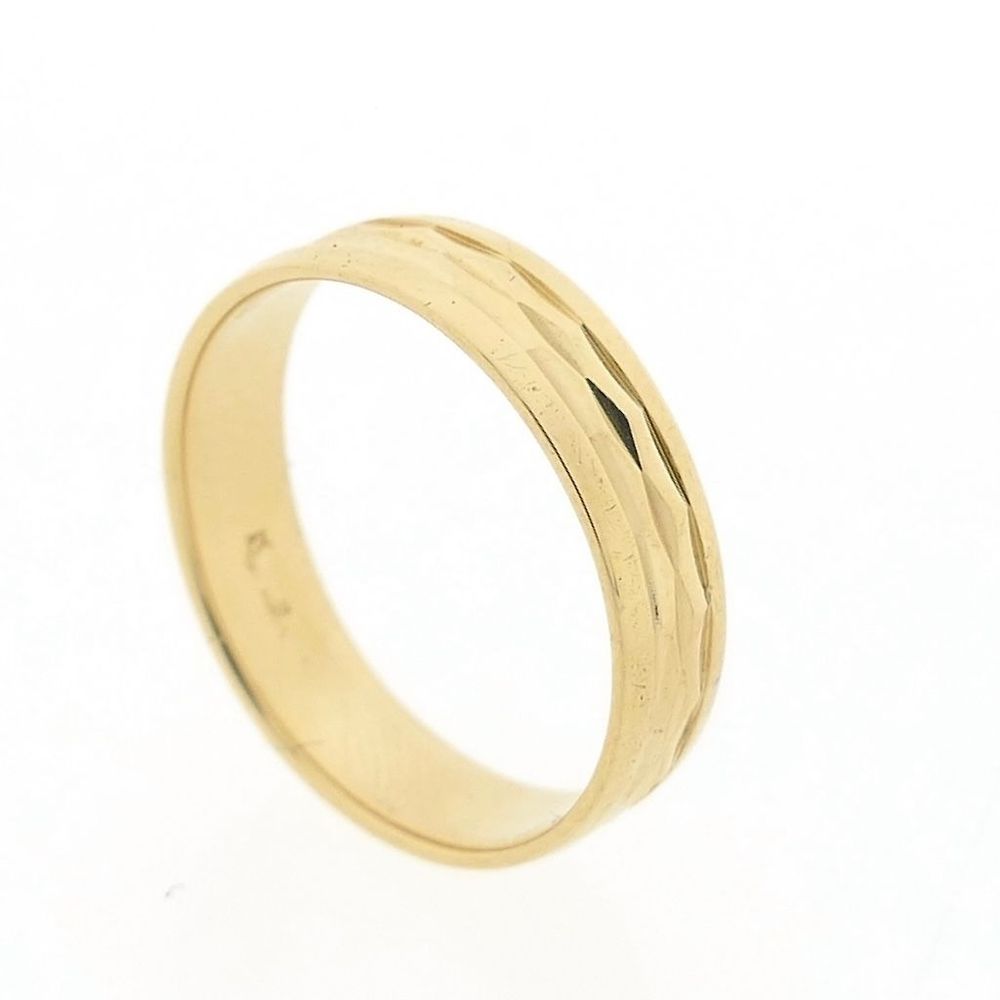 Gold ring with a pattern. The pattern gives the ring a lot of depth. The ring is made of 14-karat yellow gold (585/1000).