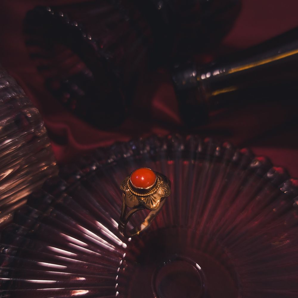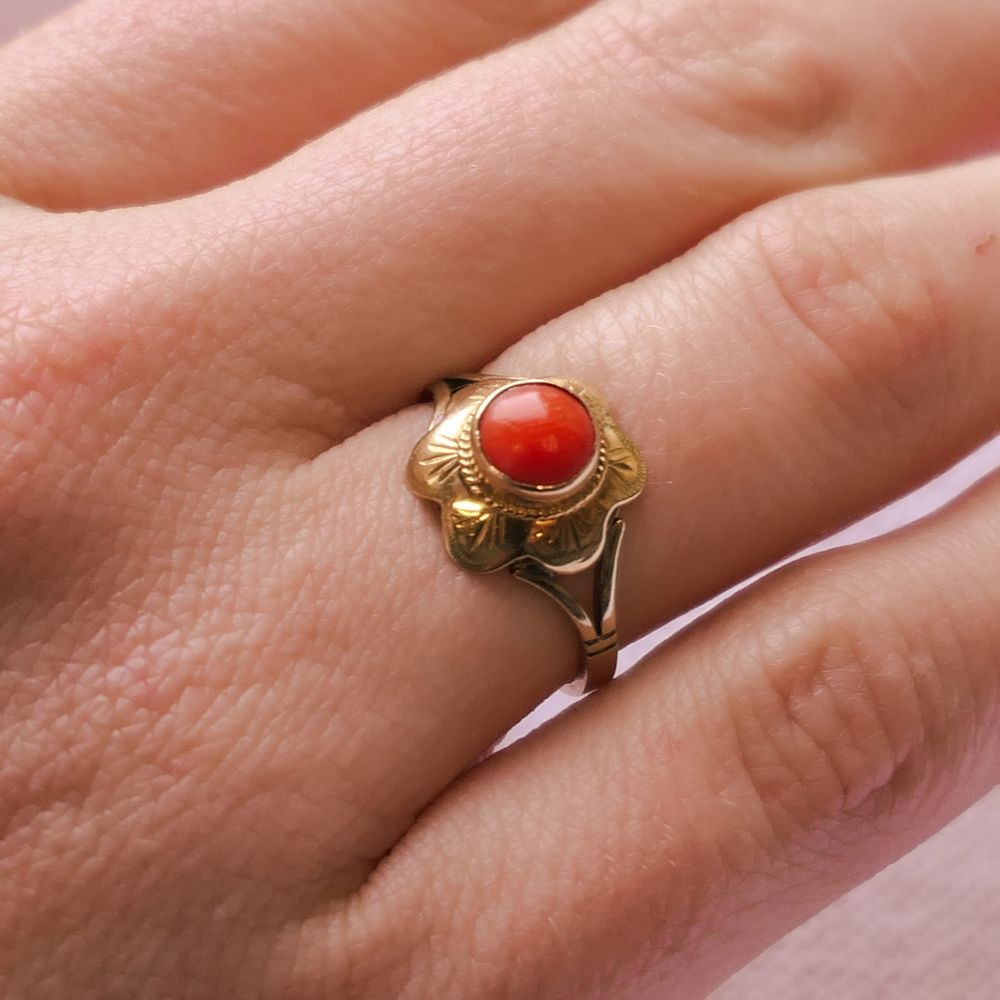 Gold ring with red coral | Vintage