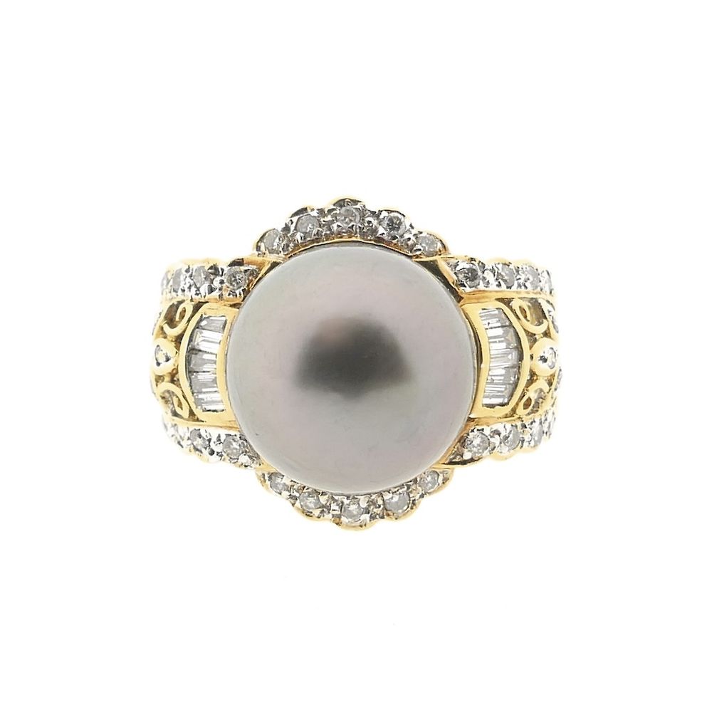 Gold ring with Tahitian pearl and diamond 0.46 ct.