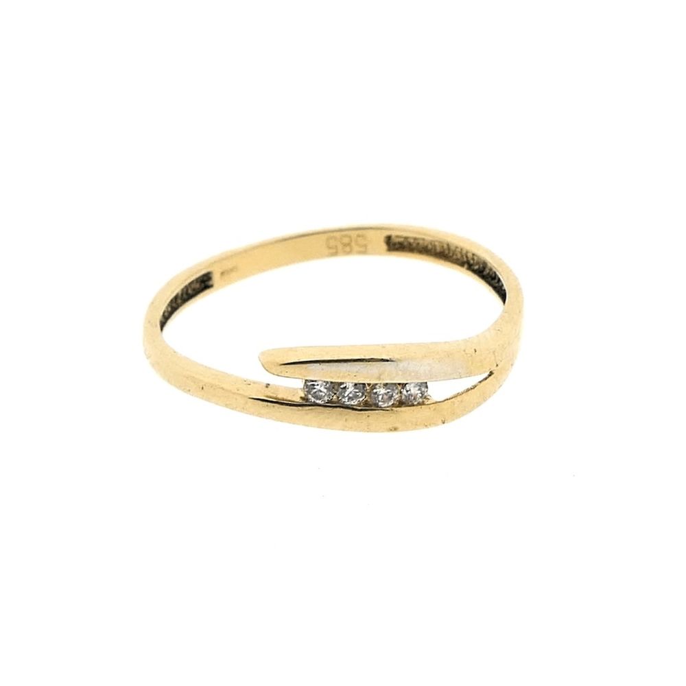 Gold ring set with four round brilliant-cut zirconia. A stunning ring with an elegant look. The ring is crafted from 14-karat yellow gold (585/1000).