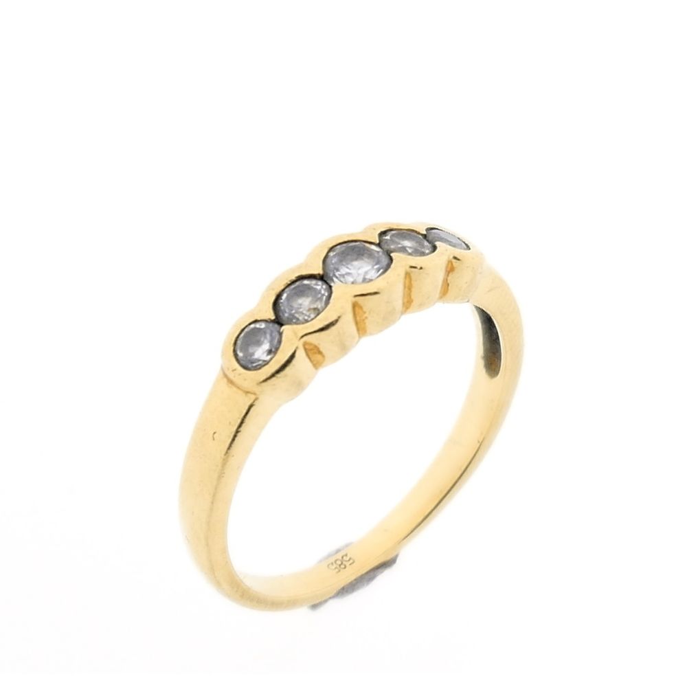 Gold ring set with five round brilliant-cut zirconia stones. A stunning ring with an elegant look. The ring is crafted from 14-karat yellow gold (585/1000).