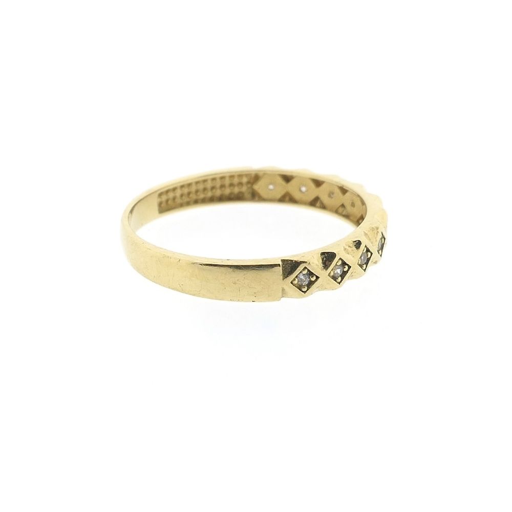 Gold ring with ten stunning zirconia stones set in a checkered pattern. The ring can be worn solo or layered with other rings. This elegant women's ring is crafted from 18-karat yellow gold (750/1000).