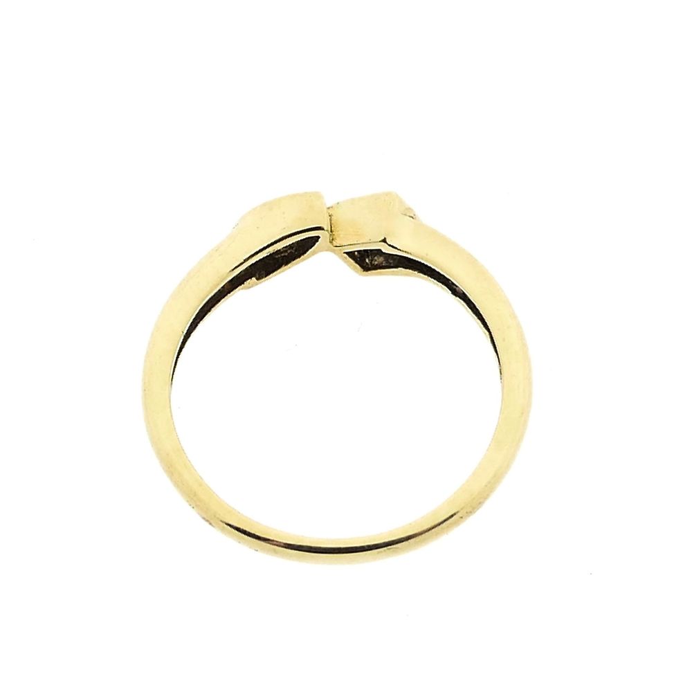 Gold ring set with two zirconia stones. The stones are princess cut and marquee cut. The piece has a subtle appearance and is made of 14-carat yellow gold (585/1000).