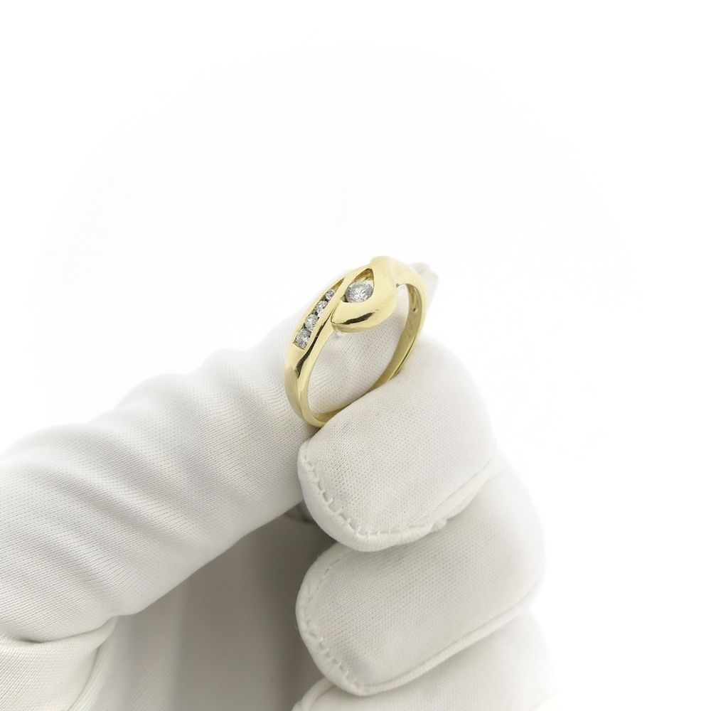 Gold ring with zirconia stones. The ring has a modern and timeless look and is crafted from 14-karat yellow gold (585/1000).