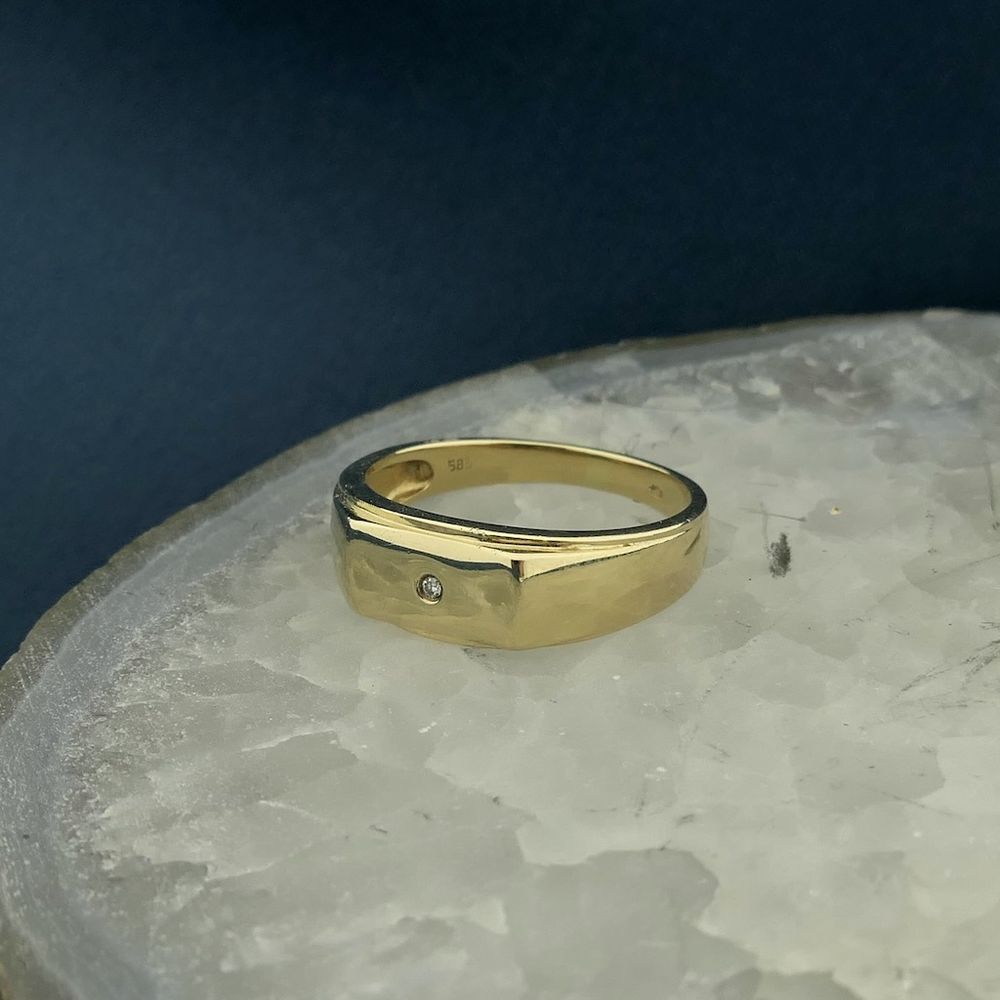 Gold signet ring set with a diamond. The ring has an elegant and classic look. This men's ring is crafted from 14-karat yellow gold (585/1000).