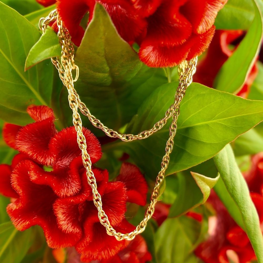Gold Singapore link necklace. This subtle necklace is crafted from 14-karat gold (585/1000).
