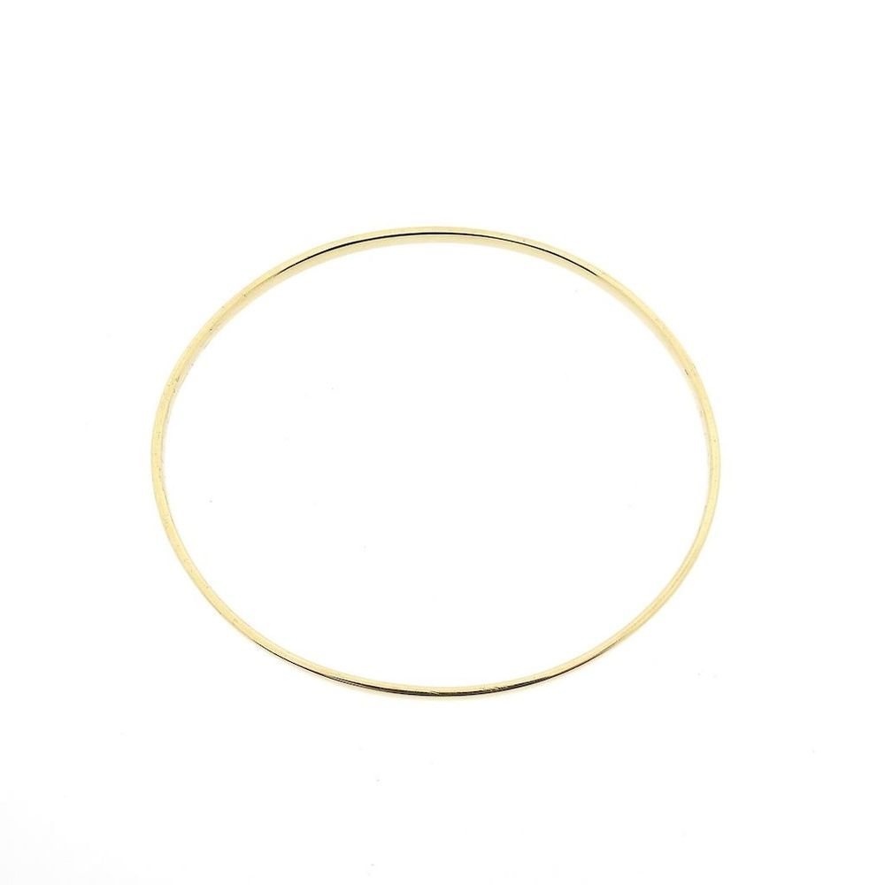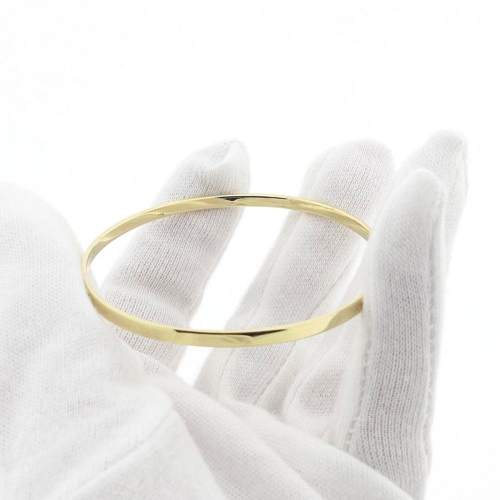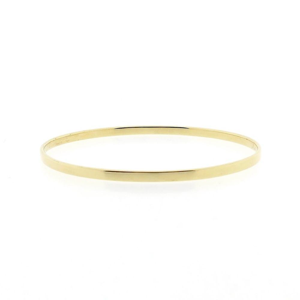 Gold bangle with a smooth, shiny finish. Suitable for wearing solo or layered with other jewelry, it's a subtle and elegant addition to your wrist. Crafted from 14-karat yellow gold (585/1000), it's a statement piece.