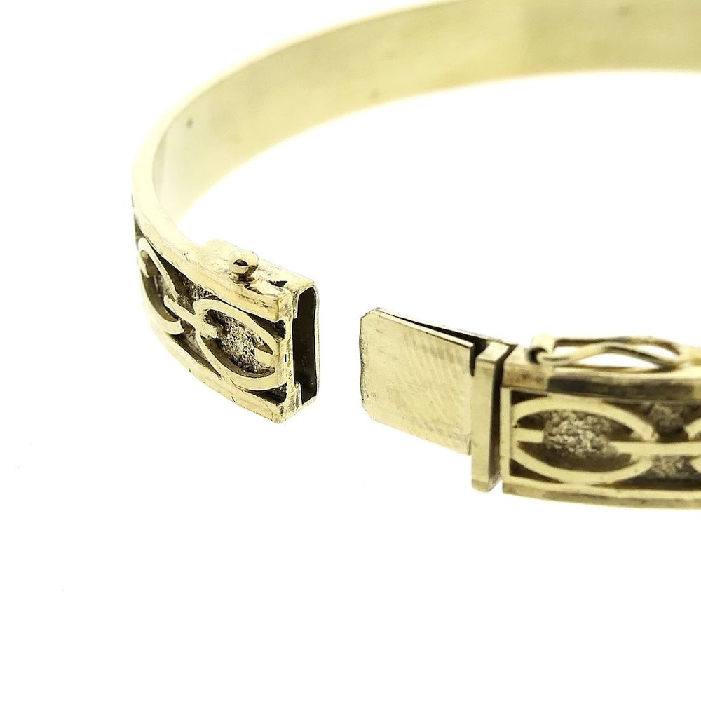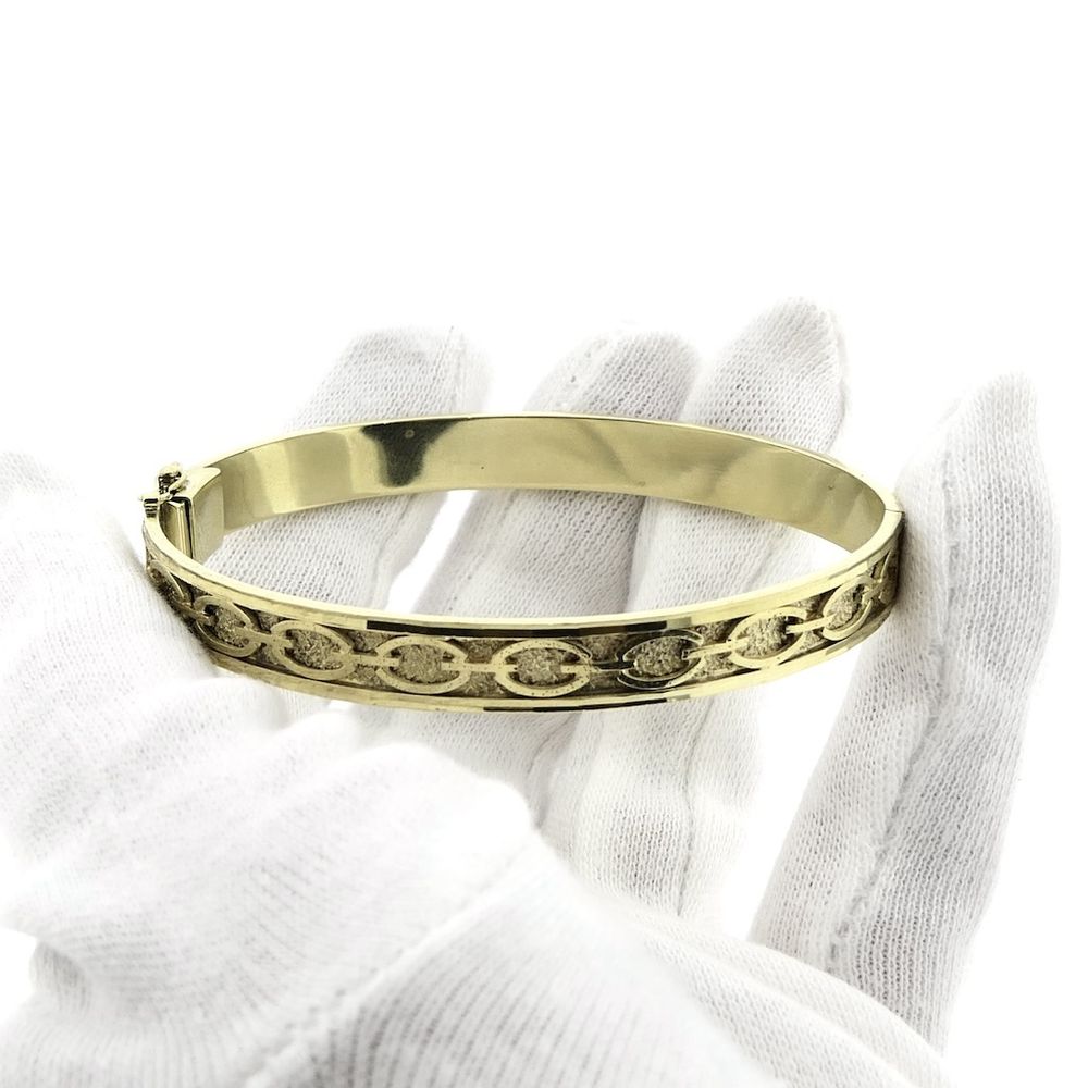 Luxurious gold bangle with a pattern. The bracelet is made of 14-karat yellow gold (585/1000).