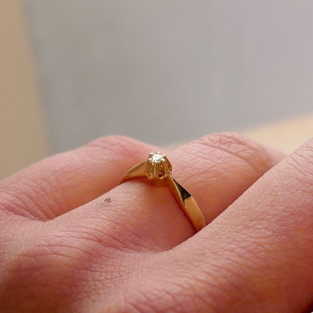 Gold solitaire ring with diamond; 0.03 ct.