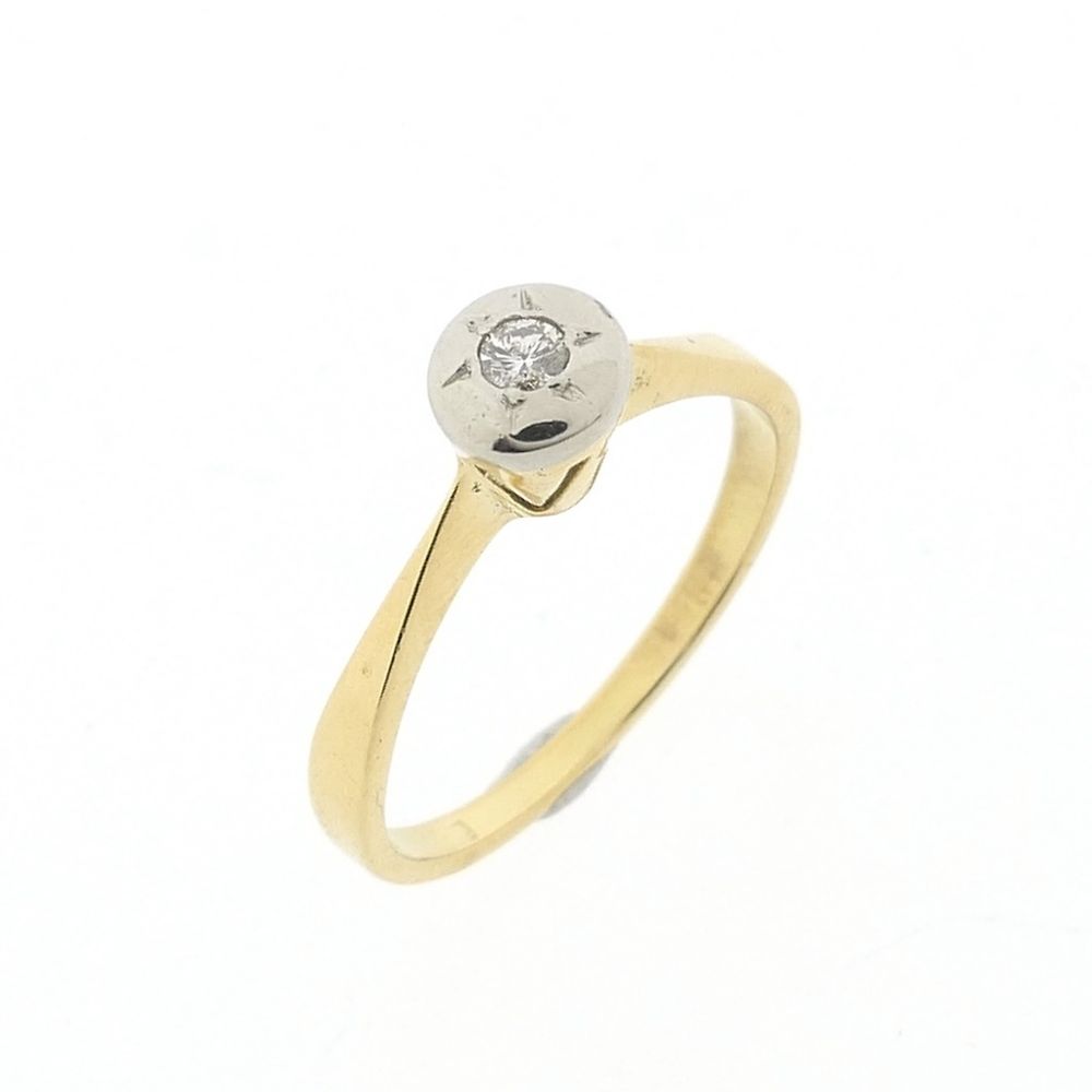 Gold ring set with a 0.05 ct. natural round brilliant-cut diamond. The diamond is set in white gold, which makes it sparkle even more beautifully. The ring is crafted from 14-karat yellow gold (585/1000).