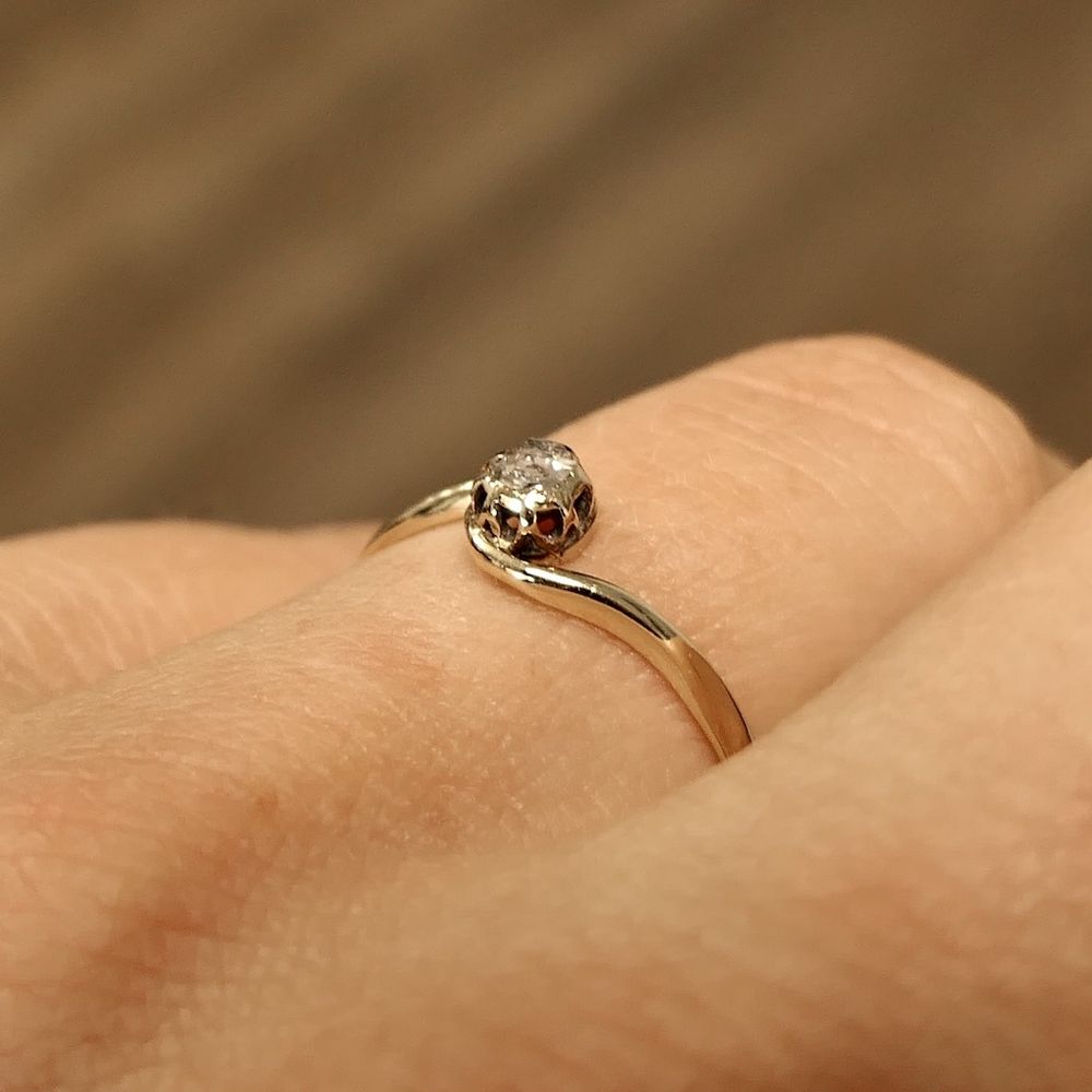 Gold solitaire ring set with a rose-cut natural diamond. The ring is crafted from 14-karat yellow gold (585/1000).
