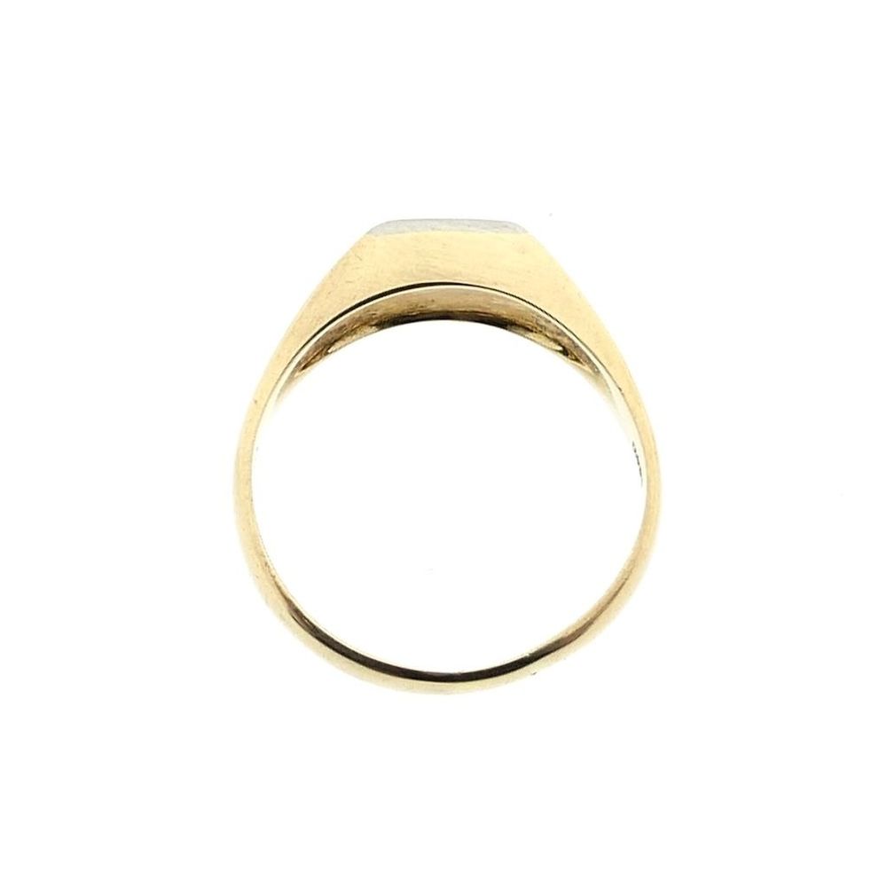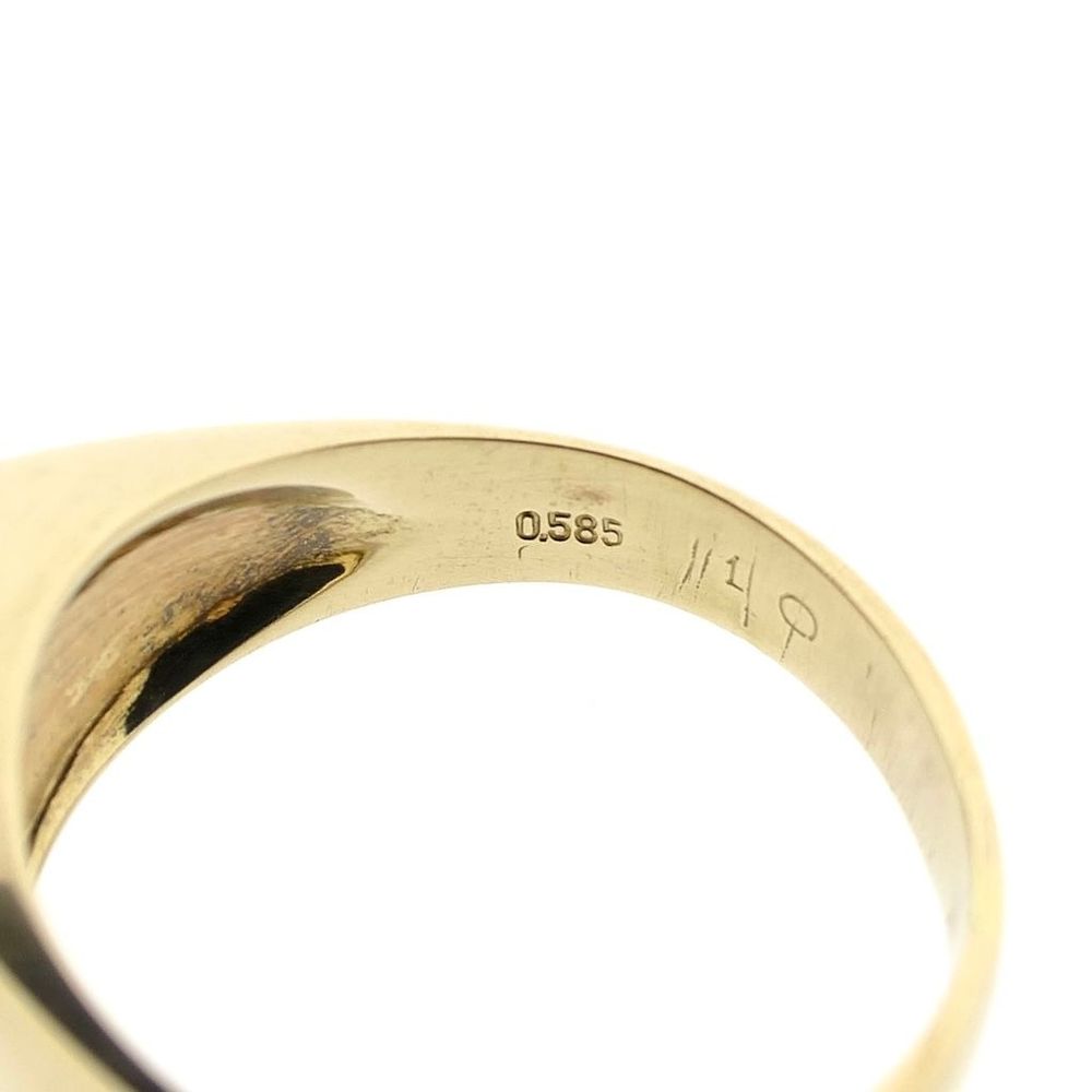 Gold solitaire ring set with a round brilliant-cut diamond. The diamond is set in white gold, making the stone stand out even more. The ring is crafted from 14-karat yellow gold (585/1000).