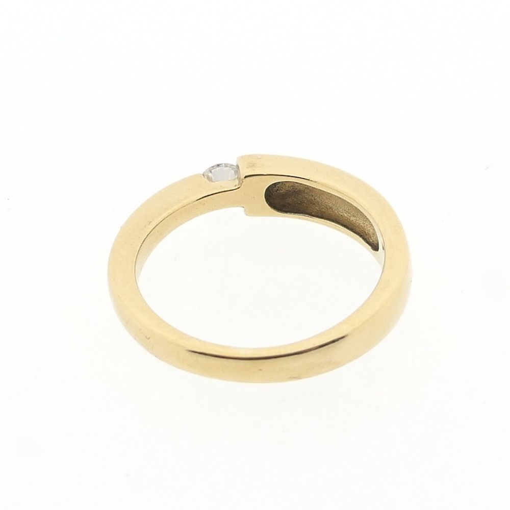 Gold ring set with a 0.15 ct. round brilliant-cut natural diamond. The diamond's placement creates a floating effect. The ring is crafted from 14-karat yellow gold (585/1000).