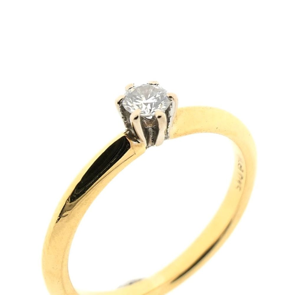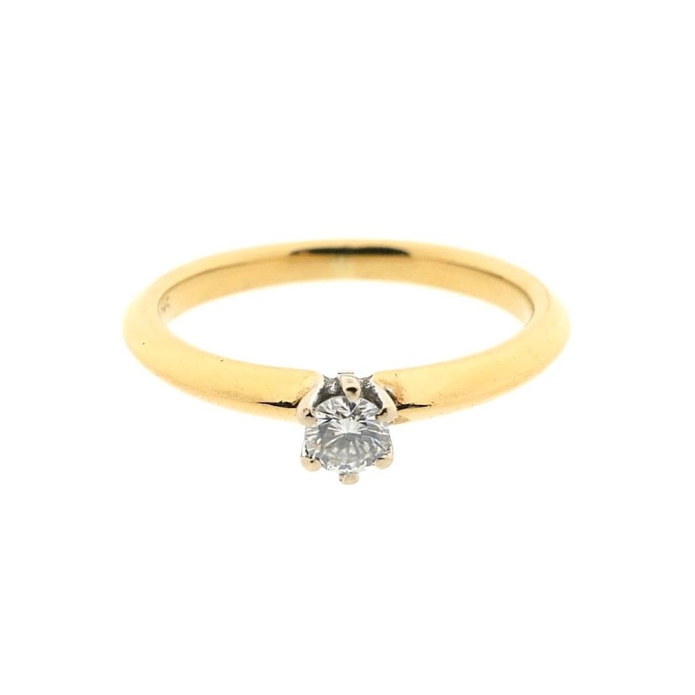 Gold solitaire ring. The ring is set with a 0.15 ct natural diamond. It has an elegant, subtle appearance. Crafted from 18-karat yellow gold (750/1000), it is a true gemstone.