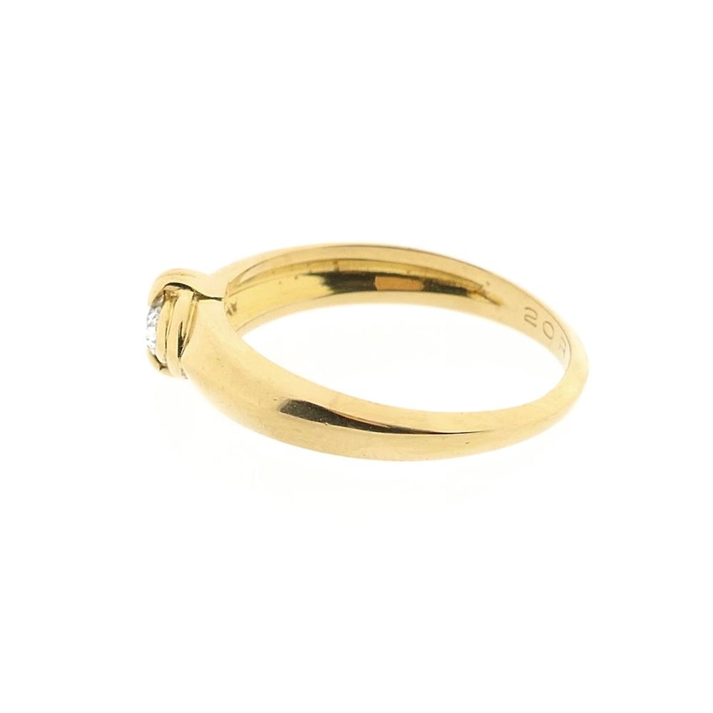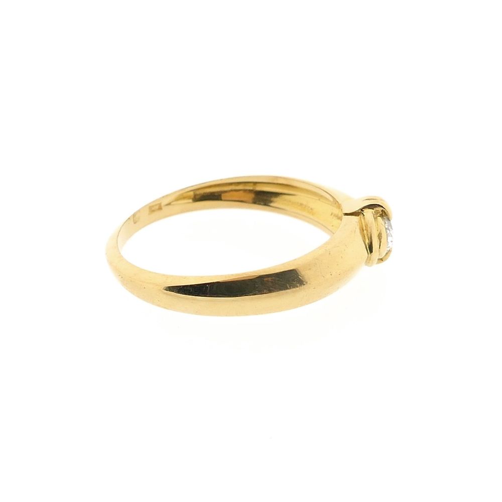 Gold solitaire ring set with a stunning 0.20 ct natural oval-cut diamond. The ring has a subtle and classic look. Crafted from 18-karat yellow gold (750/1000), it is a true gemstone.