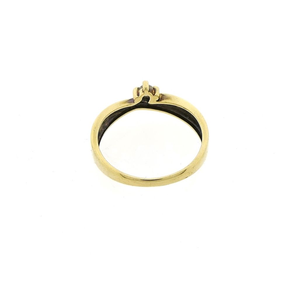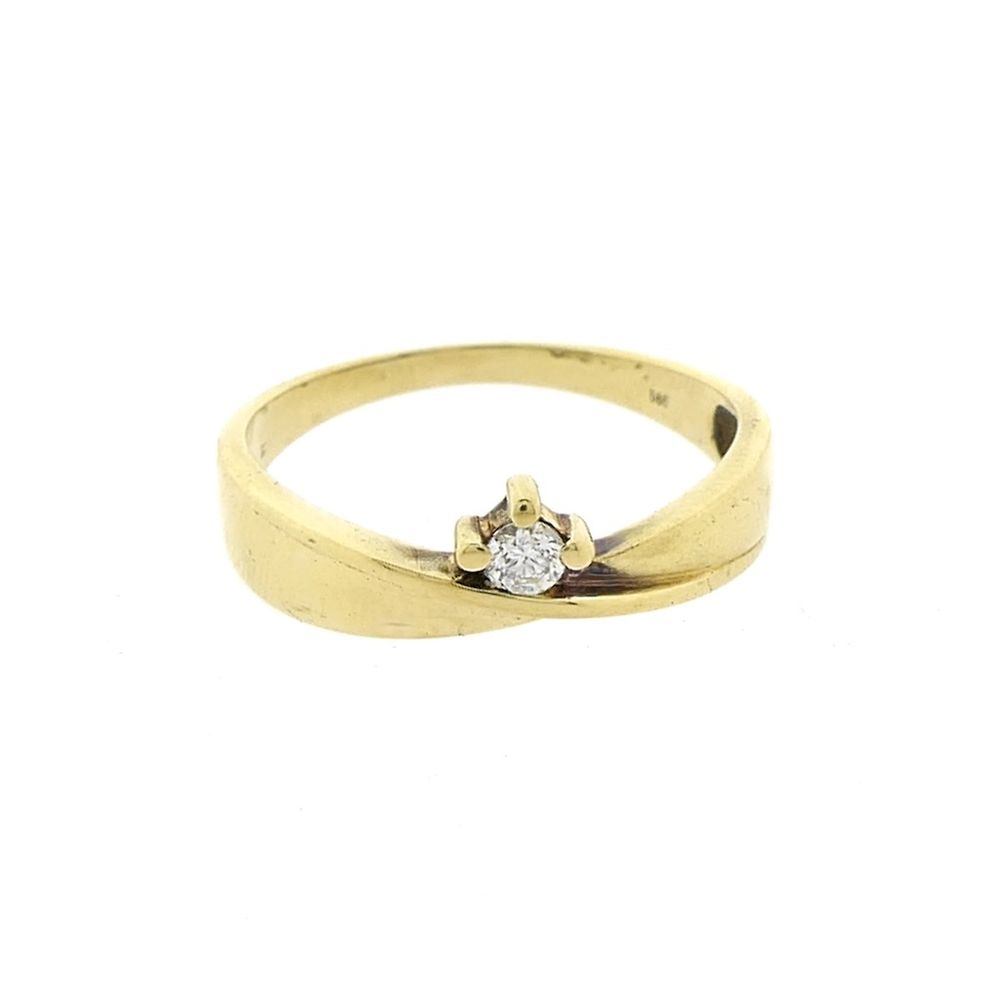 Gold solitaire ring set with a round brilliant-cut zirconia. The ring has a subtle appearance. Crafted from 14-karat yellow gold (585/1000), it is a true gemstone.