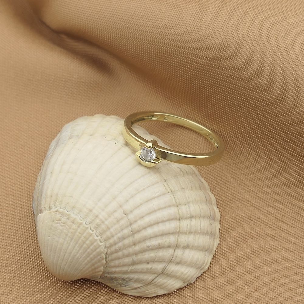Gold solitaire ring with zirconia