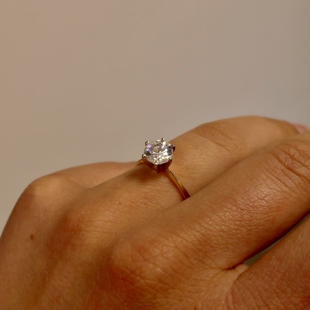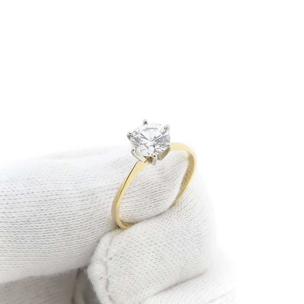 Gold solitaire ring with zirconia