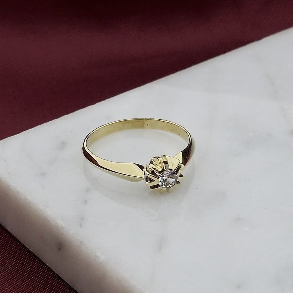 Gold solitaire ring with zirconia