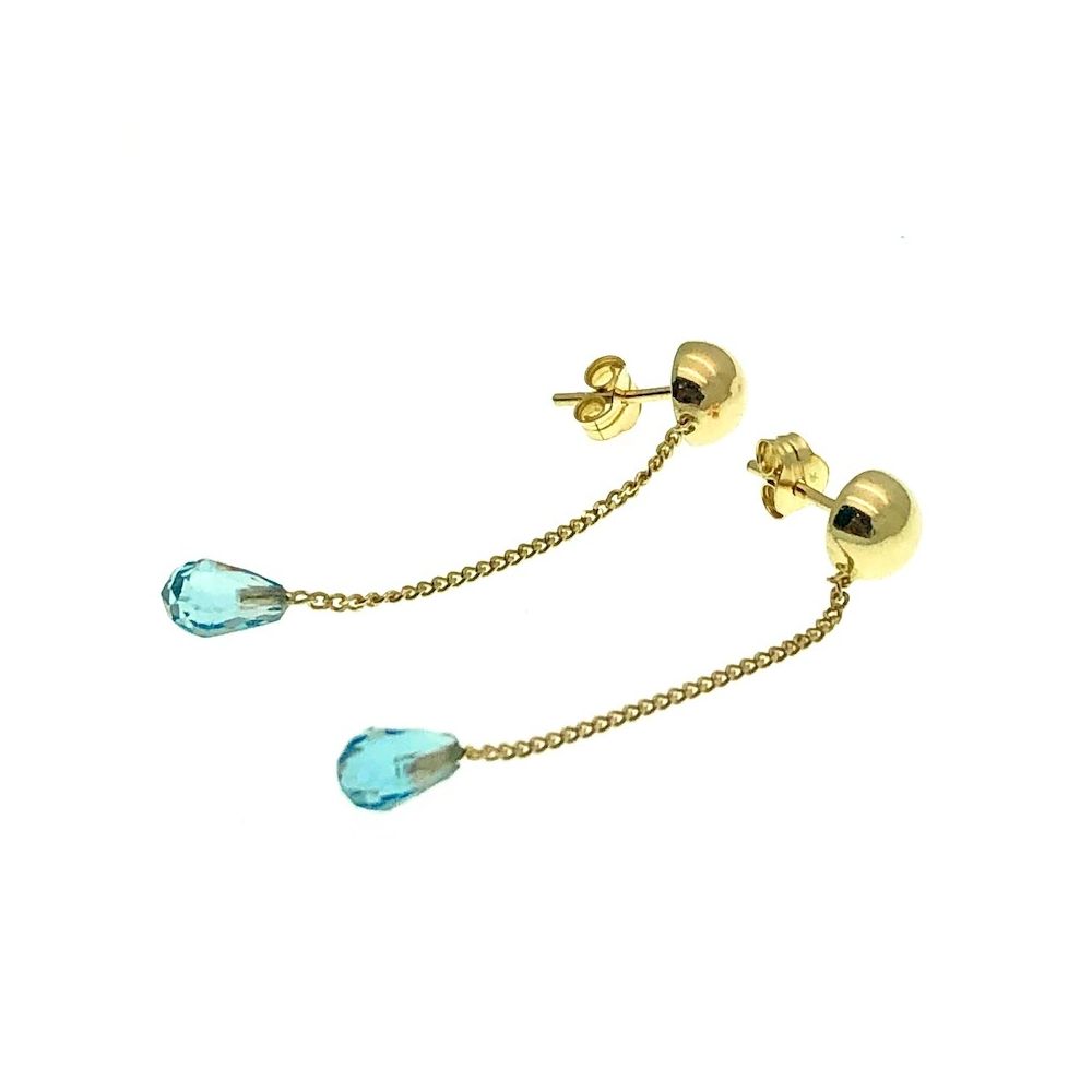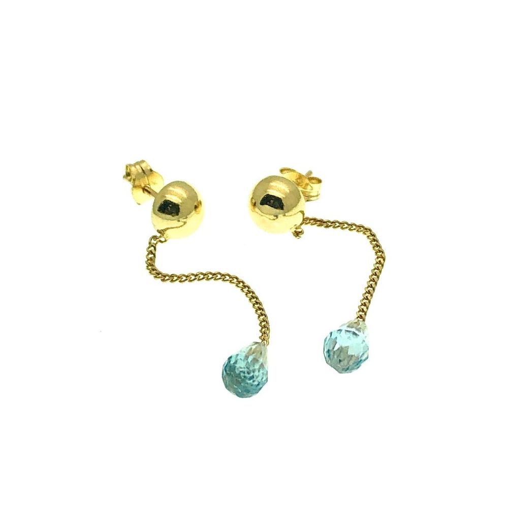 Gold stud earrings with blue gemstone