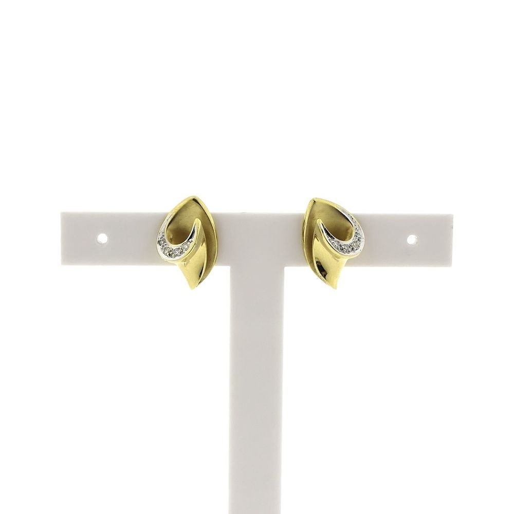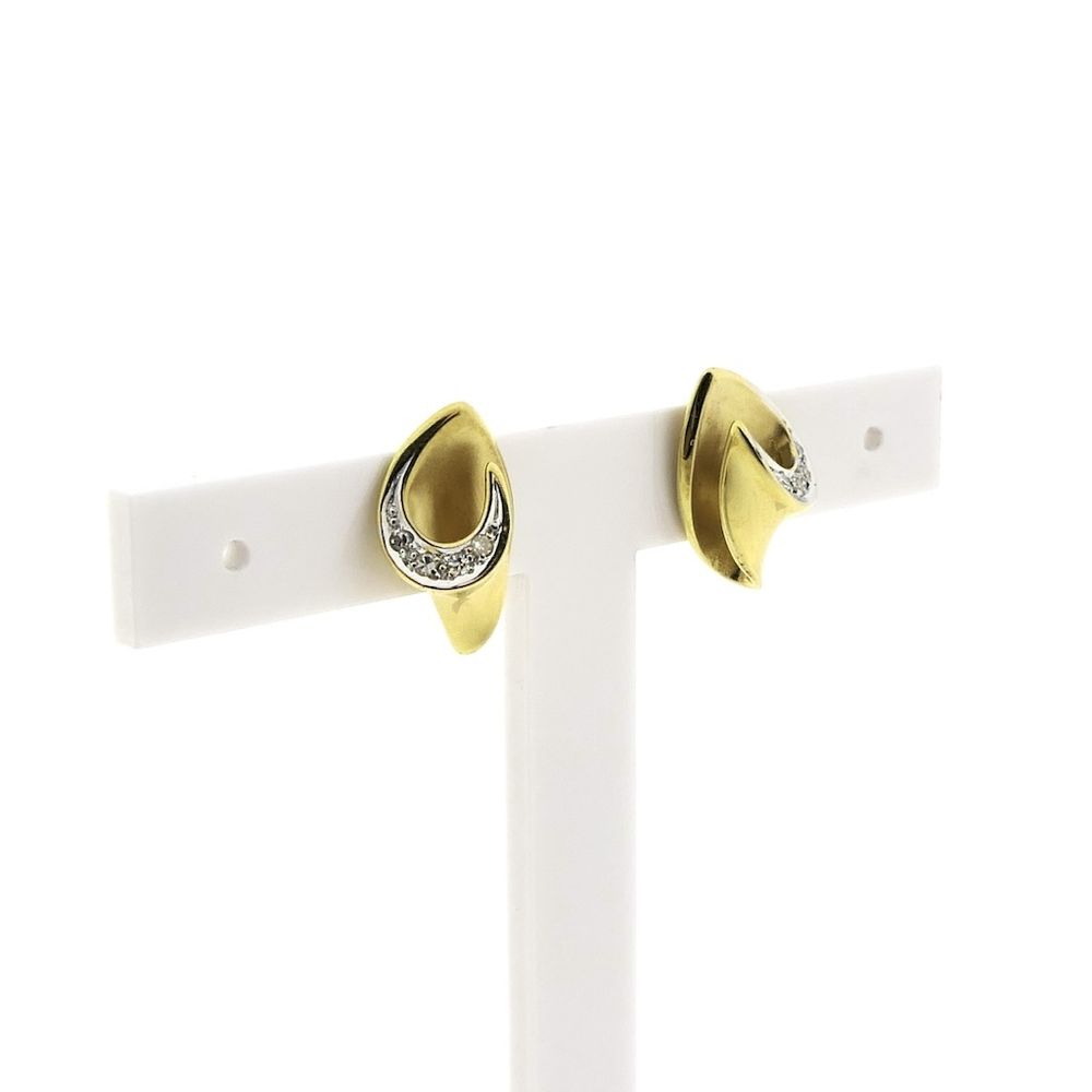 Beautiful gold earrings set with diamonds. The total weight of the diamonds is 0.12 ct. The earrings are partly matte and partly polished. An elegant set of stud earrings crafted from 18-karat yellow gold (750/1000).
