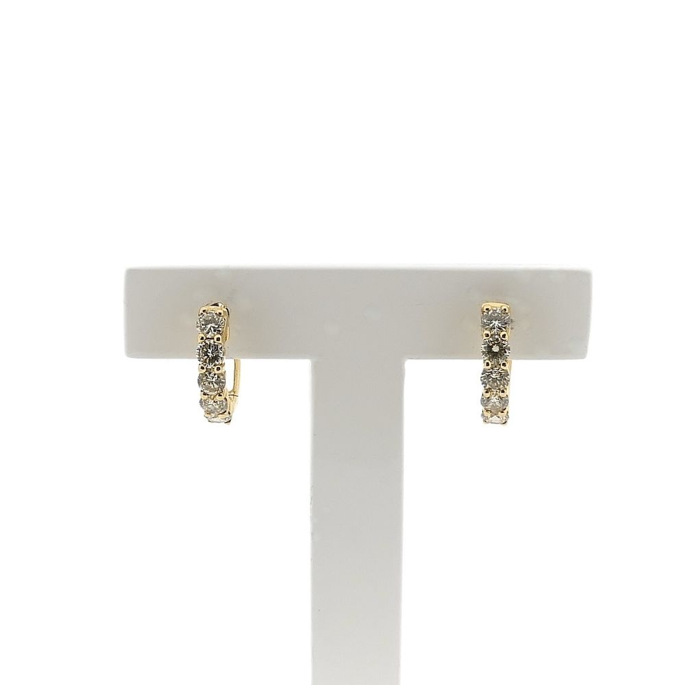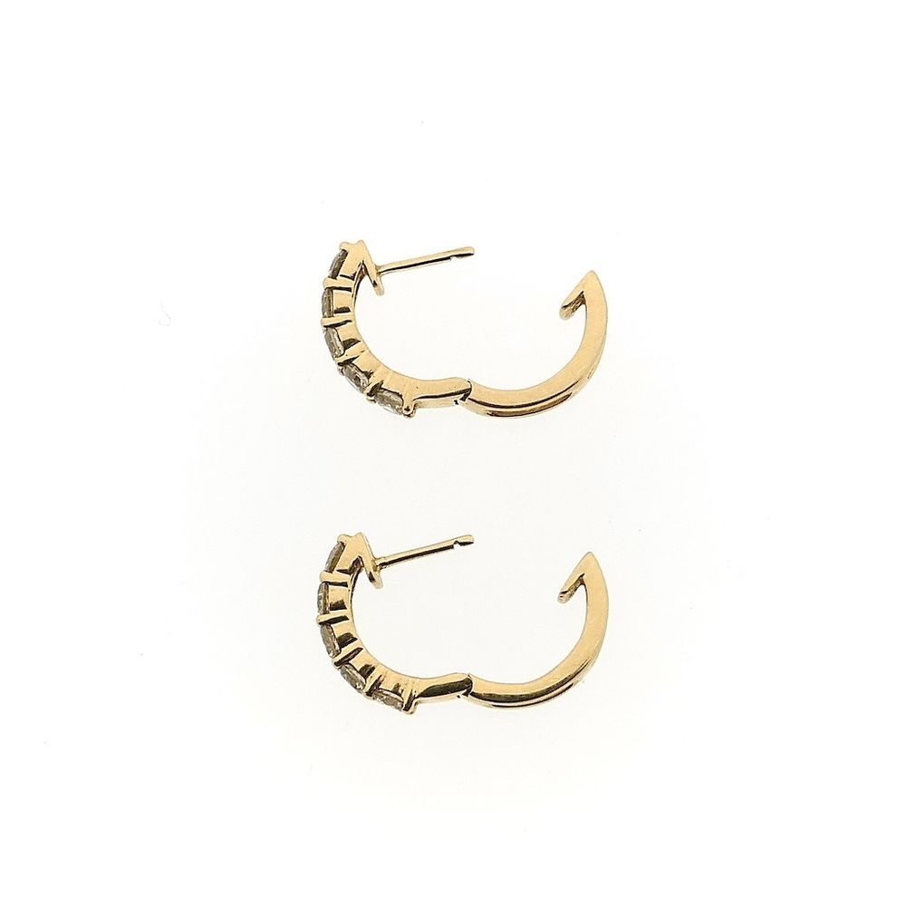 Gold stud earrings set with a total of 1.00 ct. of natural round brilliant-cut diamonds. The diamonds are arranged in a row of five, one below the other, and follow the curve of the diamond. This beautiful set of stud earrings is crafted from 14-karat yellow gold (585/1000).