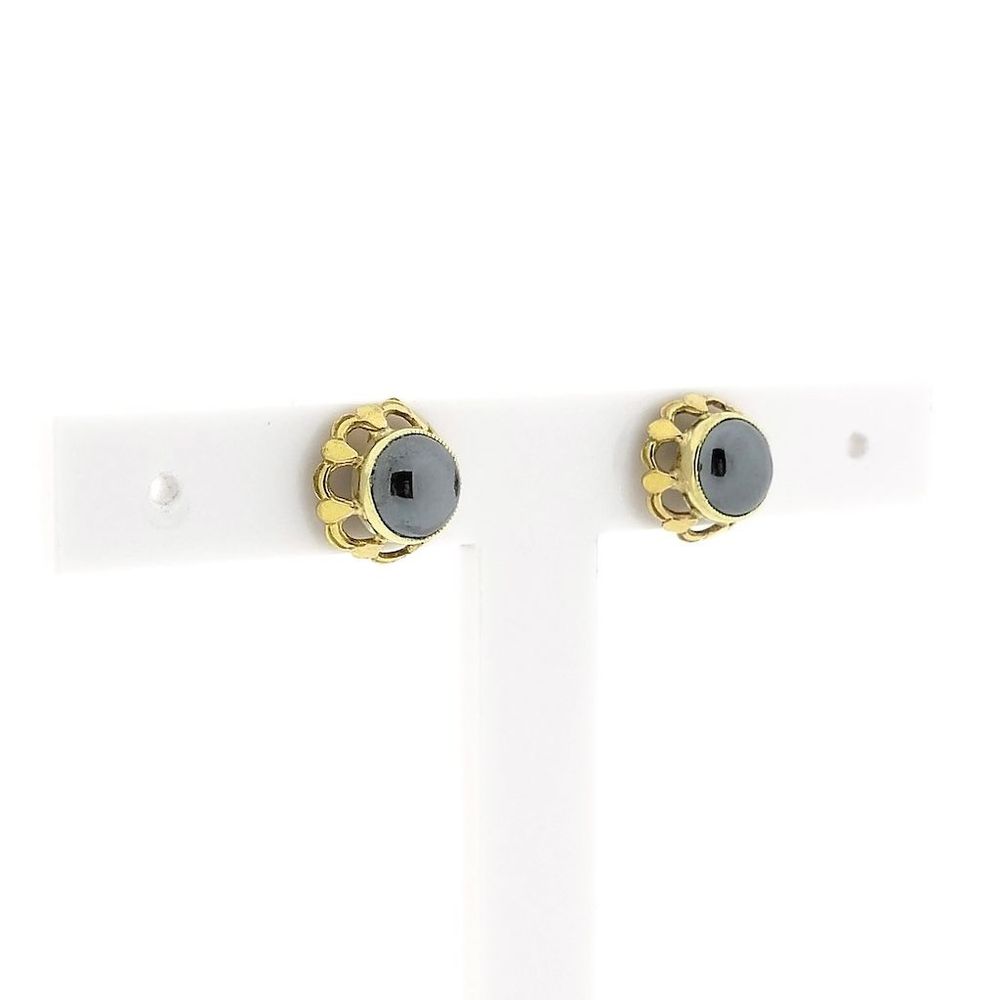 Gold stud earrings with hematite