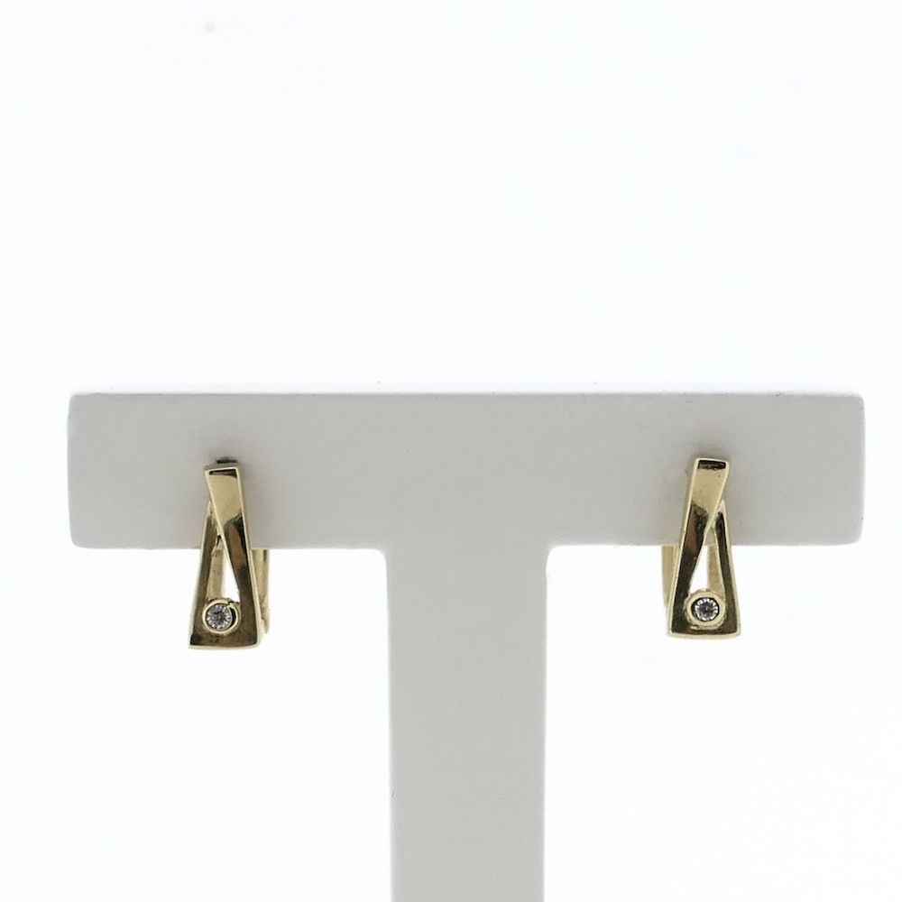 Gold stud earrings set with round brilliant-cut zirconia. The studs have a subtle and elegant design. A beautiful set of studs crafted from 14-karat yellow gold (585/1000).