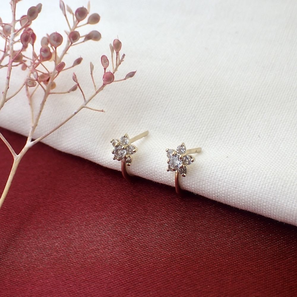 Gold stud earrings with zirconia flower