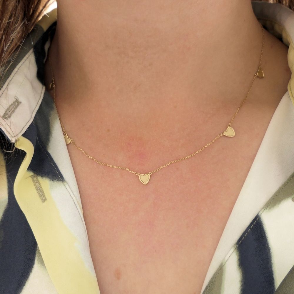 Gold thin anchor link chain with hearts | 45 cm