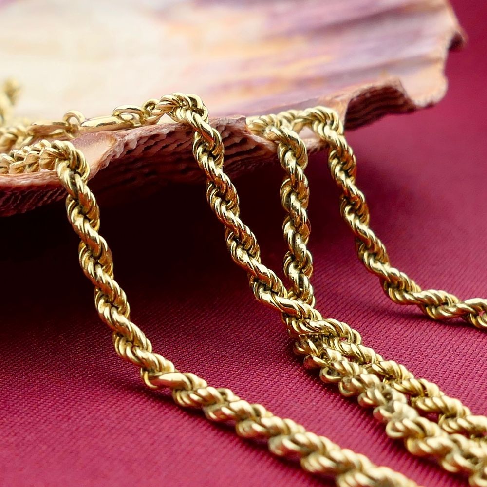 Gold twisted link chain. The chain is suitable for combining with other necklaces or worn solo. It is an elegant and timeless piece of jewelry. The chain closes with a spring ring and is crafted from 14-karat yellow gold (585/1000).