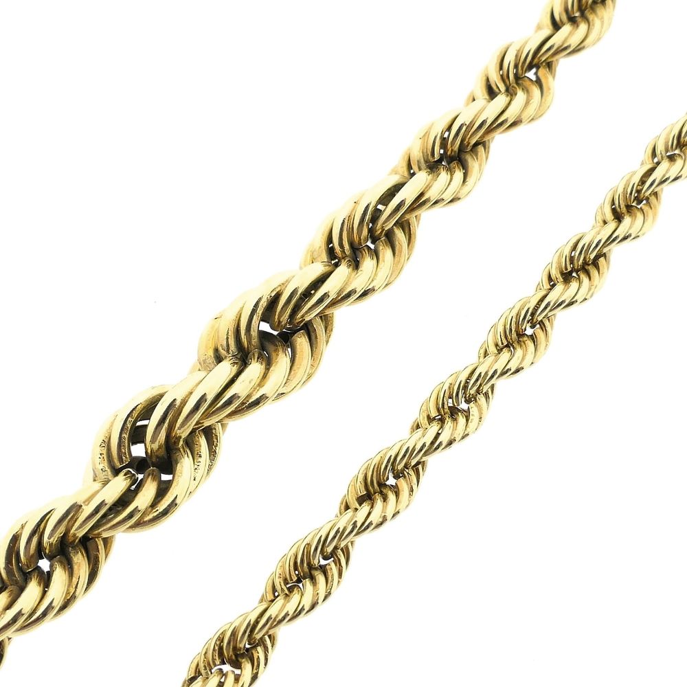 Gold twisted link necklace. This necklace is perfect for layering with other necklaces or wearing solo. The twisted links, with their varying angles, make the piece sparkle beautifully in the light. The links taper from 5.0 mm to 9.6 mm. It's an elegant and timeless piece. The necklace closes with a spring ring and is crafted from 14-karat yellow gold (585/1000).