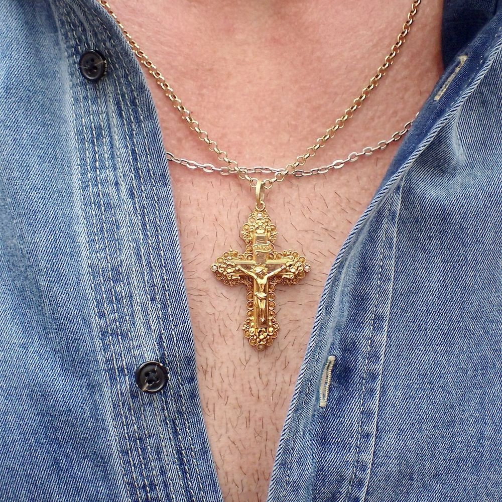 Gold Victorian pendant of a cross with pearls