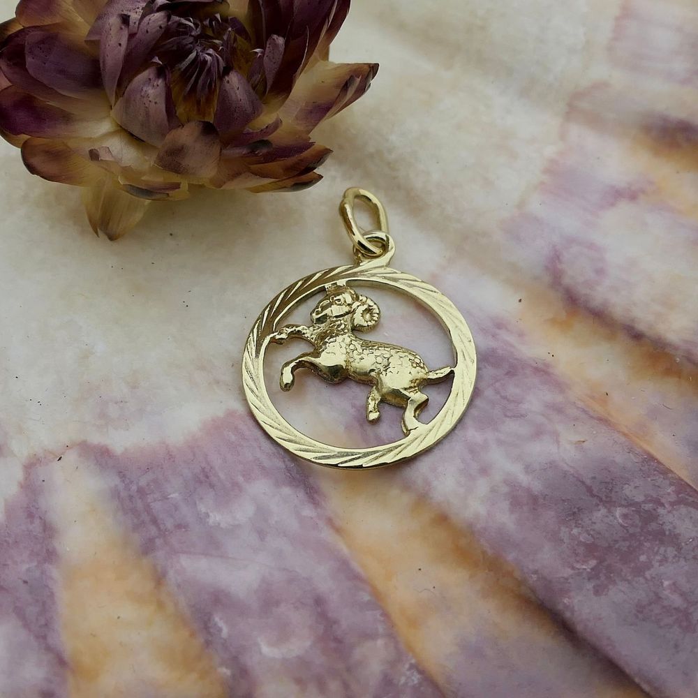 Aries zodiac sign: For those born between March 21st and April 19th. This gold Aries pendant is part of our zodiac sign collection. The pendant is smooth and detailed, crafted from 14-karat yellow gold (585/1000). Aries is a fire sign. They are known for their brave and headstrong nature. They are natural leaders and often speak their own mind. Gift tip: A lovely gift for someone with this zodiac sign!