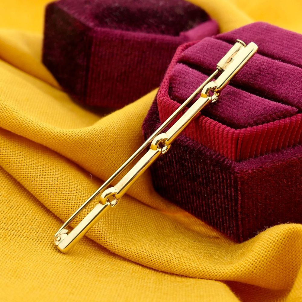 Vintage golden brooch, featuring a smooth finish. The jewelry is made of 14 karat yellow gold (585/1000).