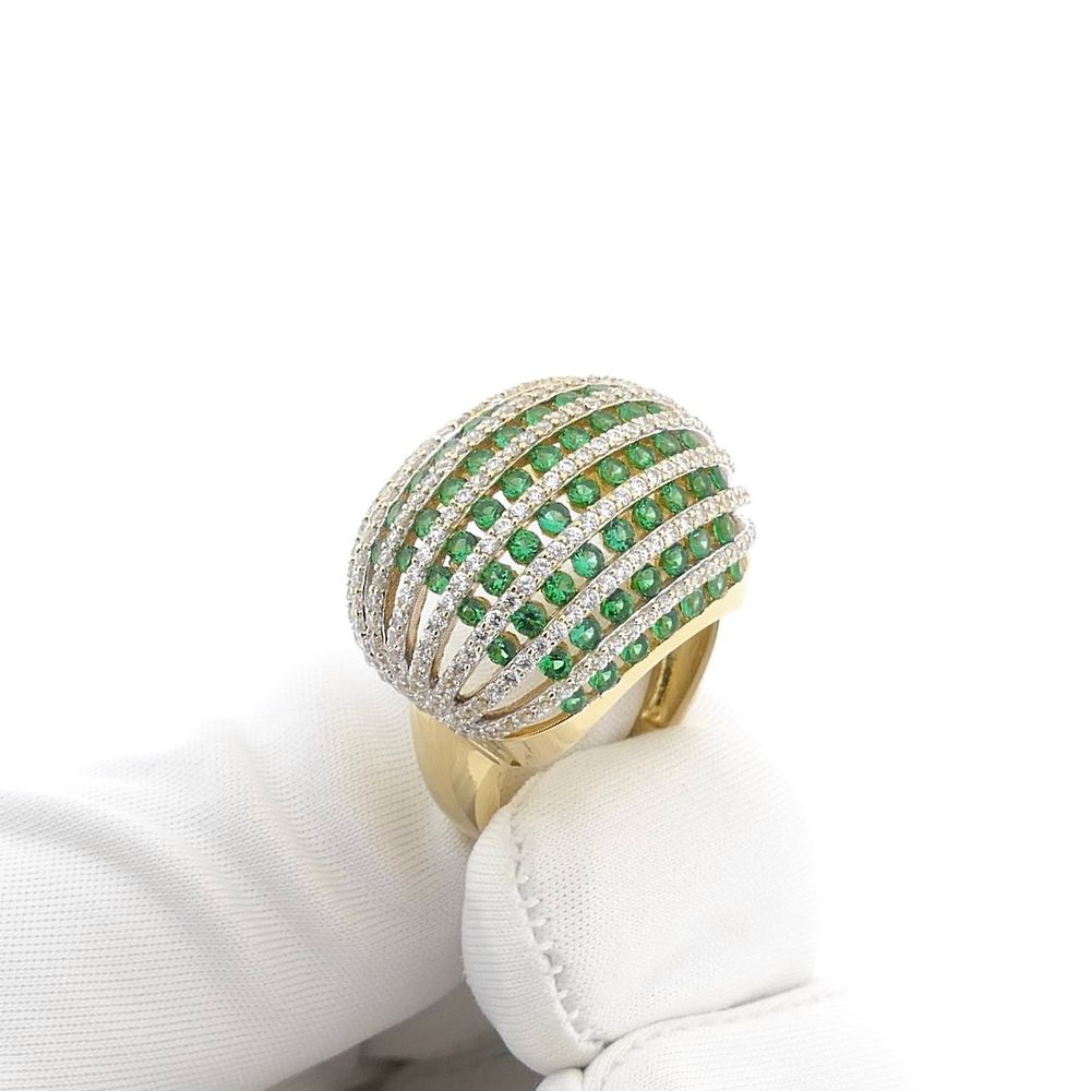 Golden Curved Ring with White and Green Zirconia