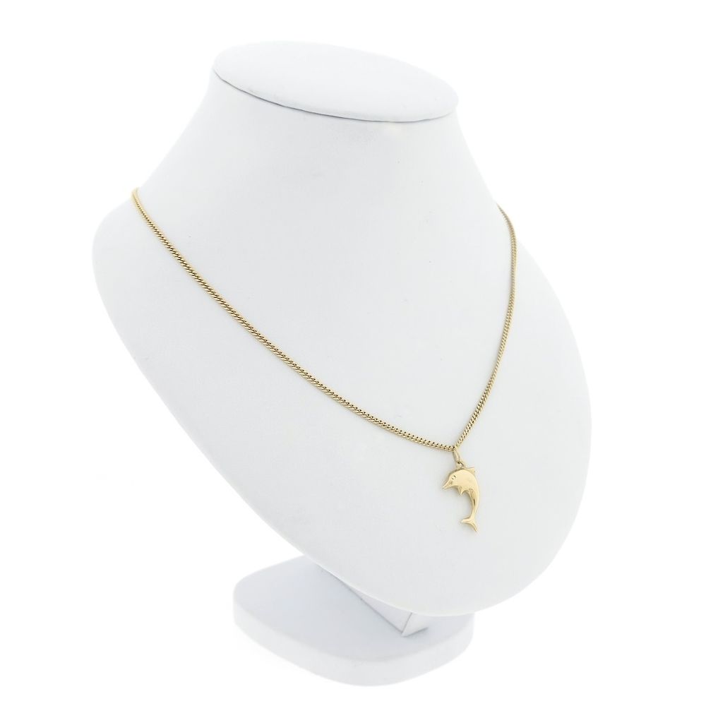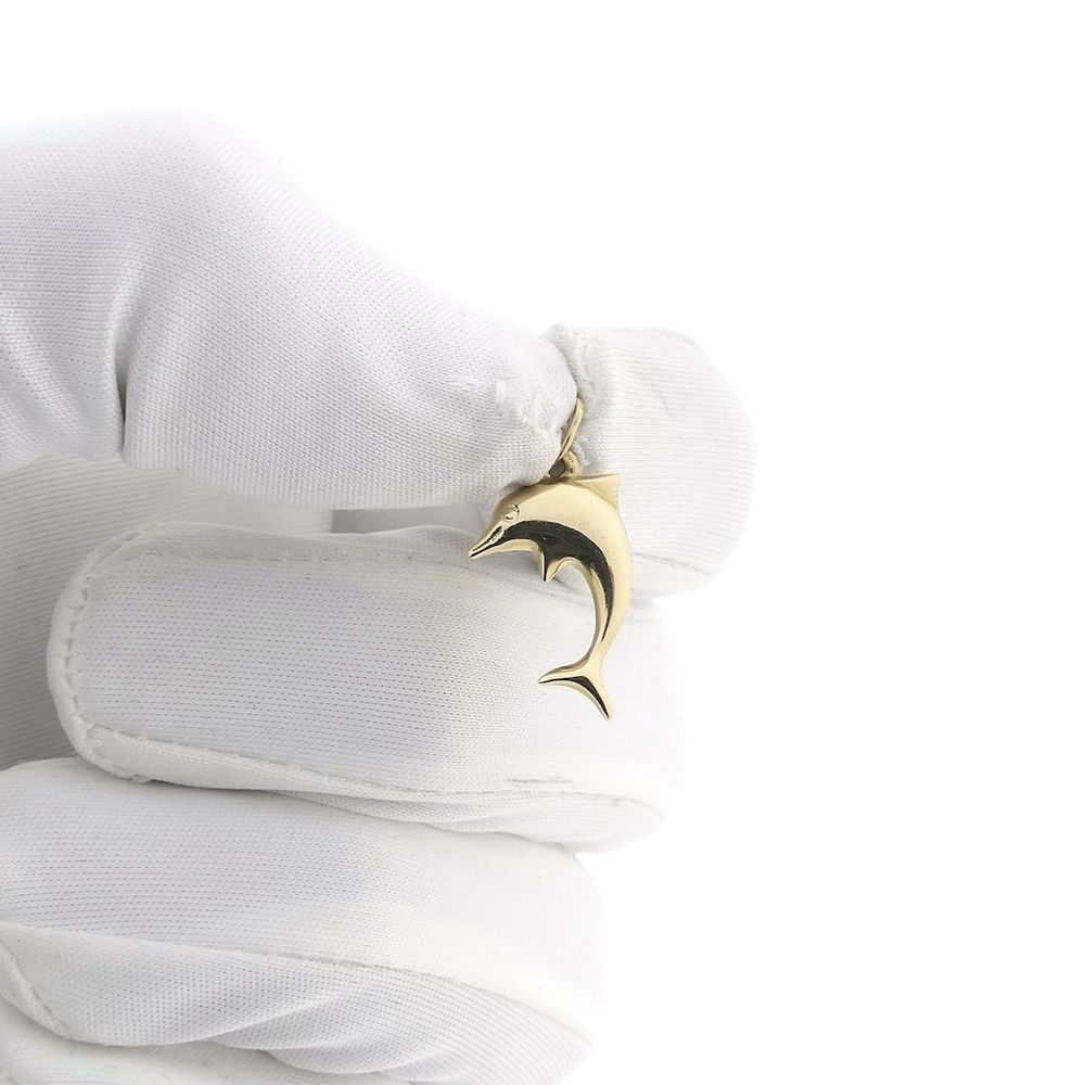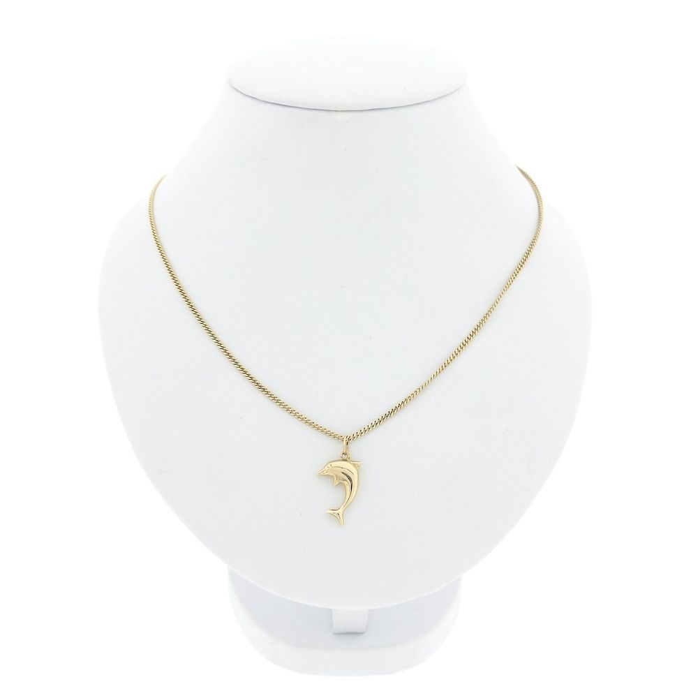 Gold dolphin pendant. A lovely pendant for your dolphin friend. The dolphin has a smooth finish and is crafted from 14-karat yellow gold (585/1000).
