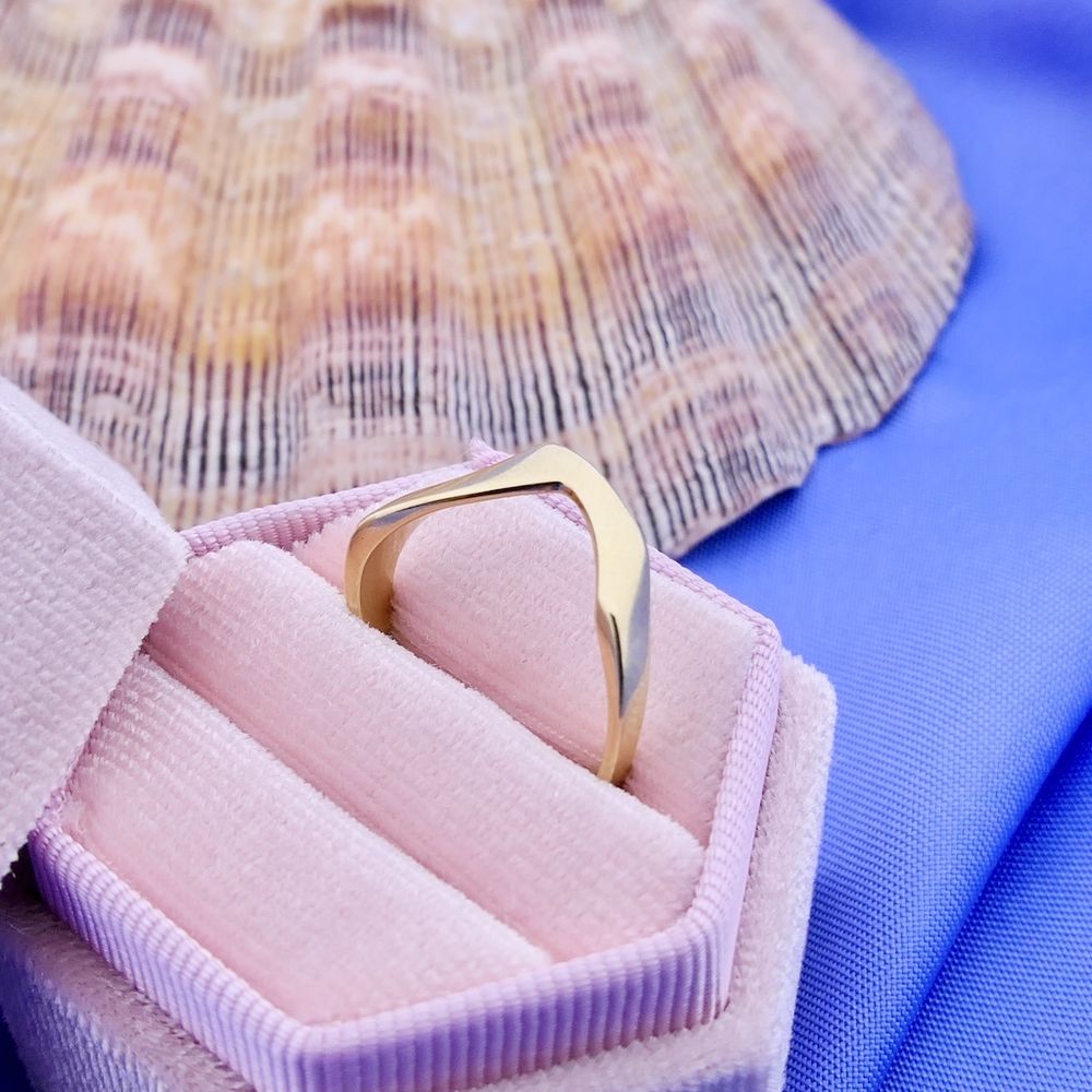 Dynamic gold ring. This beautiful women's ring has a subtle and elegant wave-like appearance. Crafted from 14-karat yellow gold (585/1000), it is a true gemstone.
