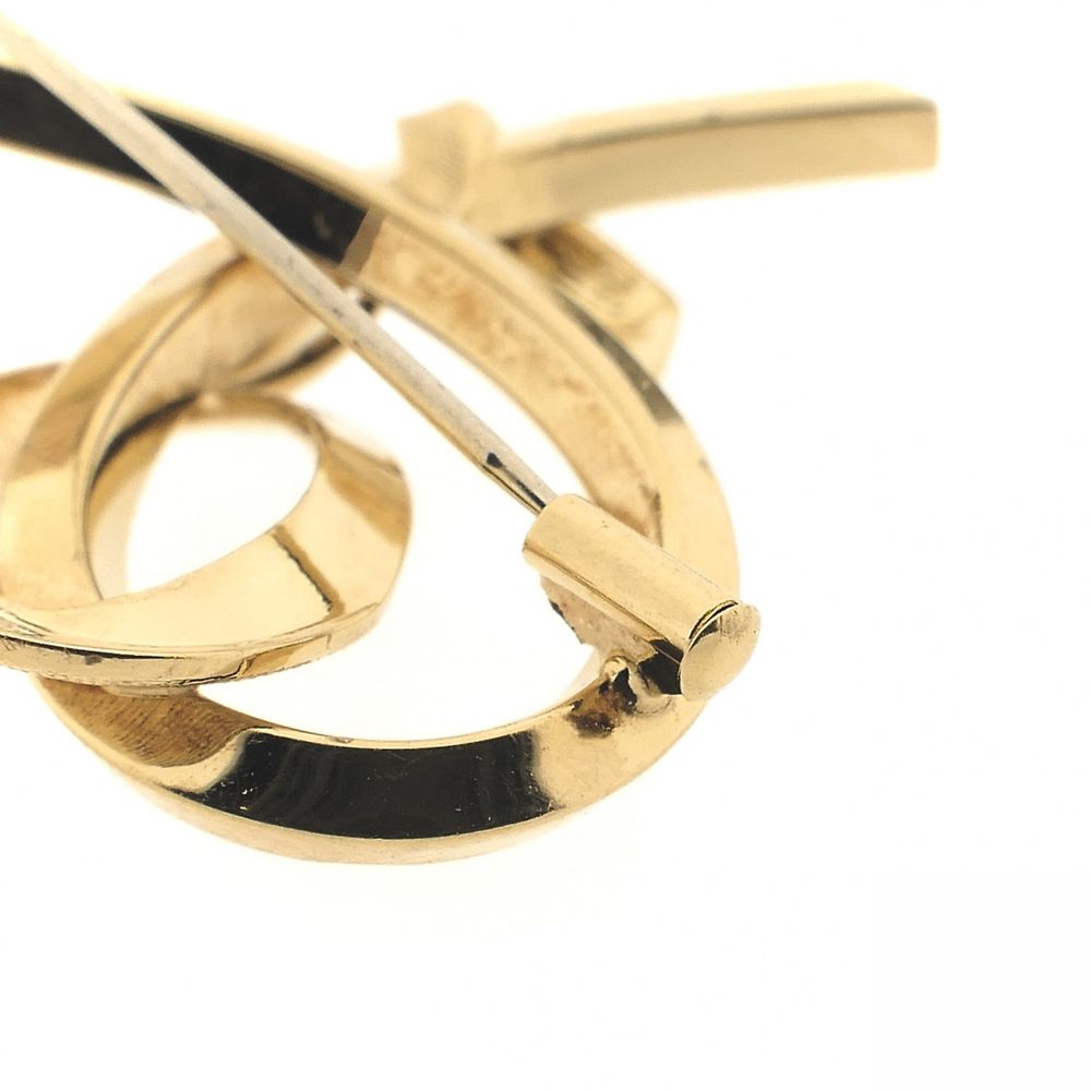Gold brooch with a dynamic design. It has a mostly glossy finish with a matte finish. A beautiful accessory to complete your outfit. The brooch is crafted from 18-karat yellow gold (750/1000).