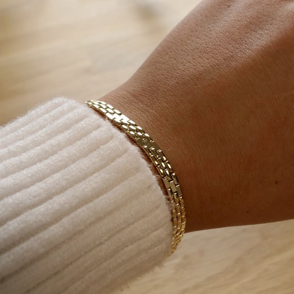 Gold fantasy link bracelet. This bracelet has a modern look and can be worn solo or layered with other bracelets. Crafted from 14-karat yellow gold (585/1000), it is a versatile piece.