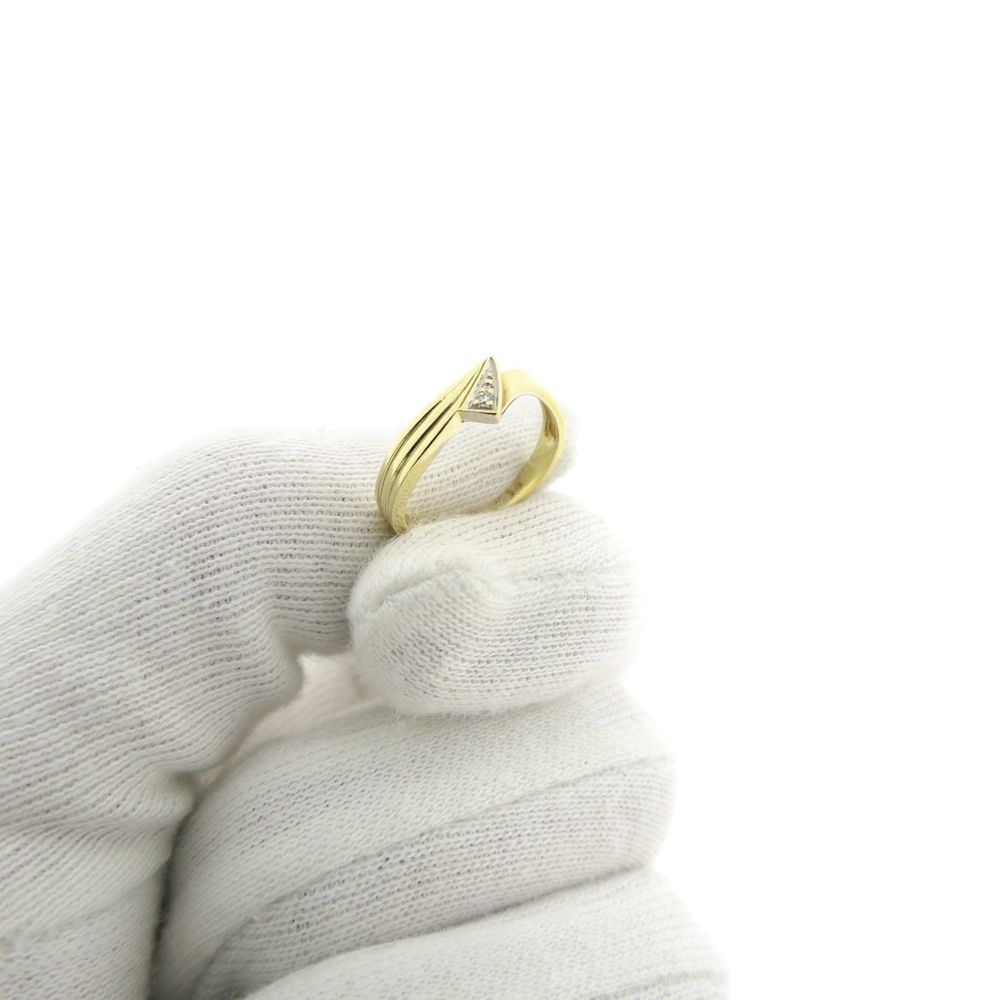 Gold fantasy ring with a diamond. The diamond is set in white gold. The ring is timeless and has a vintage look. Crafted from 14-karat yellow gold (585/1000), it is a timeless gemstone.