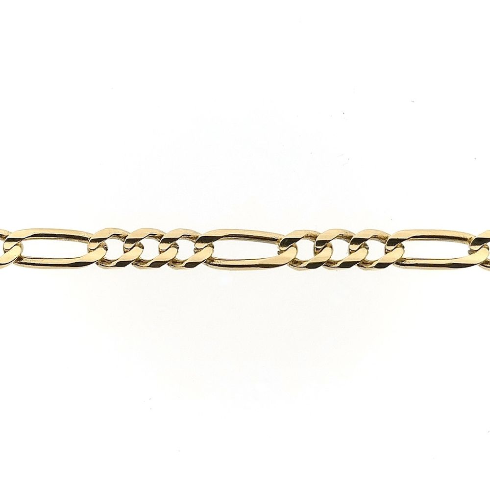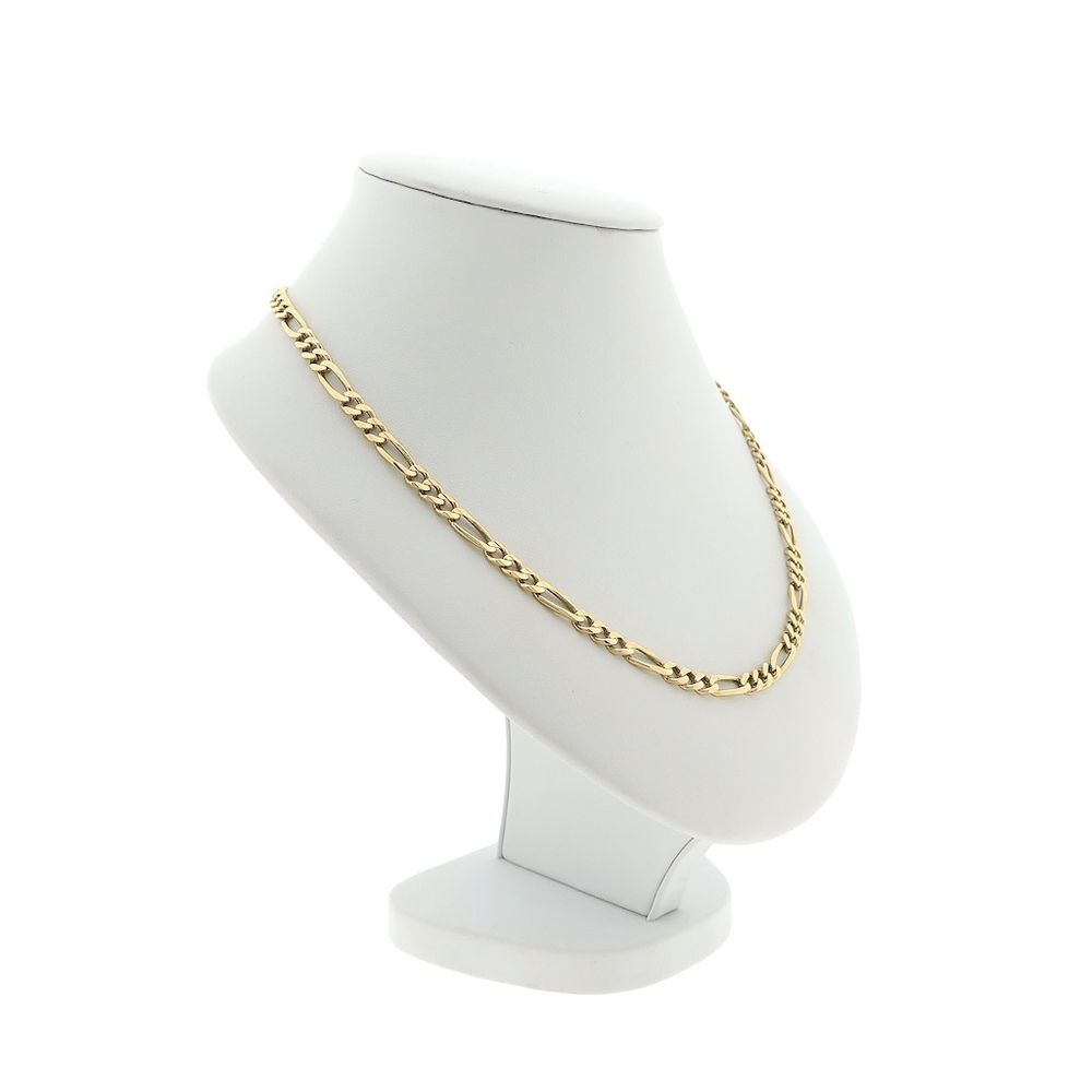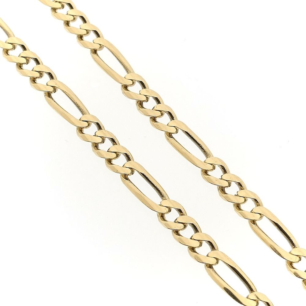 Gold Figaro link chain. Fun fact: The name is derived from the protagonist, Figaro, from the Italian opera "Barber of Seville." A timeless and luxurious necklace crafted from 14-karat yellow gold (585/1000).
