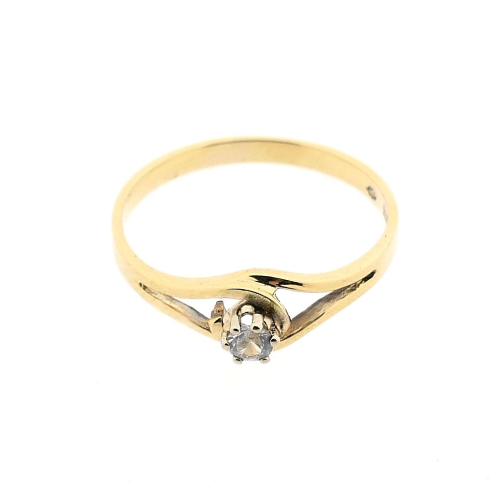Golden solitaire ring set with a 0.09 ct. diamond. The ring is made of 14 karat yellow gold (585/1000).