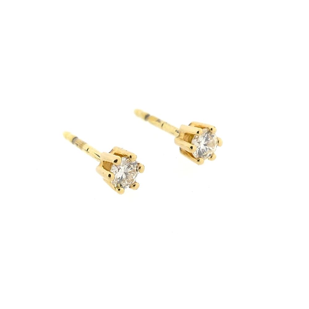 Golden Solitaire Stud Earrings with Diamond; 0.22 ct.