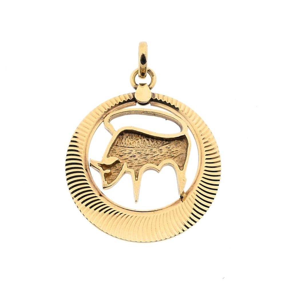 Zodiac sign Taurus: For people born from April 20 to May 20. The Taurus zodiac sign is an earth element. They are known for their calm demeanor and, with their eye for detail, they are true pleasure seekers in life. These individuals are often found in the music or arts scene. This pendant is made of 14 karat yellow gold (585/1000).