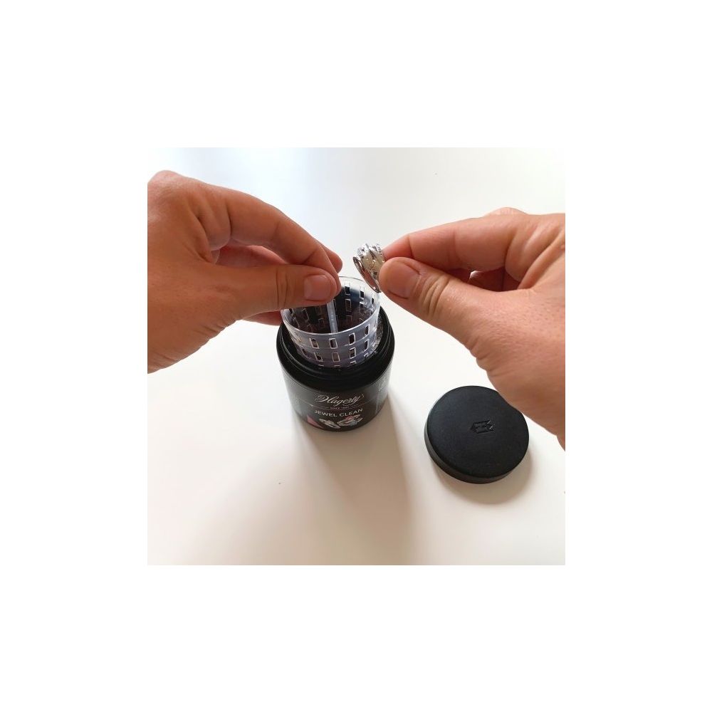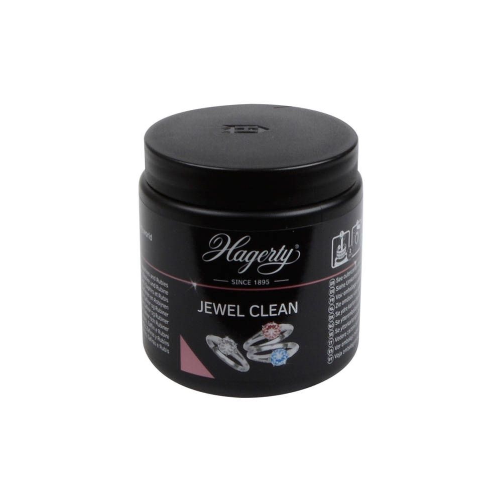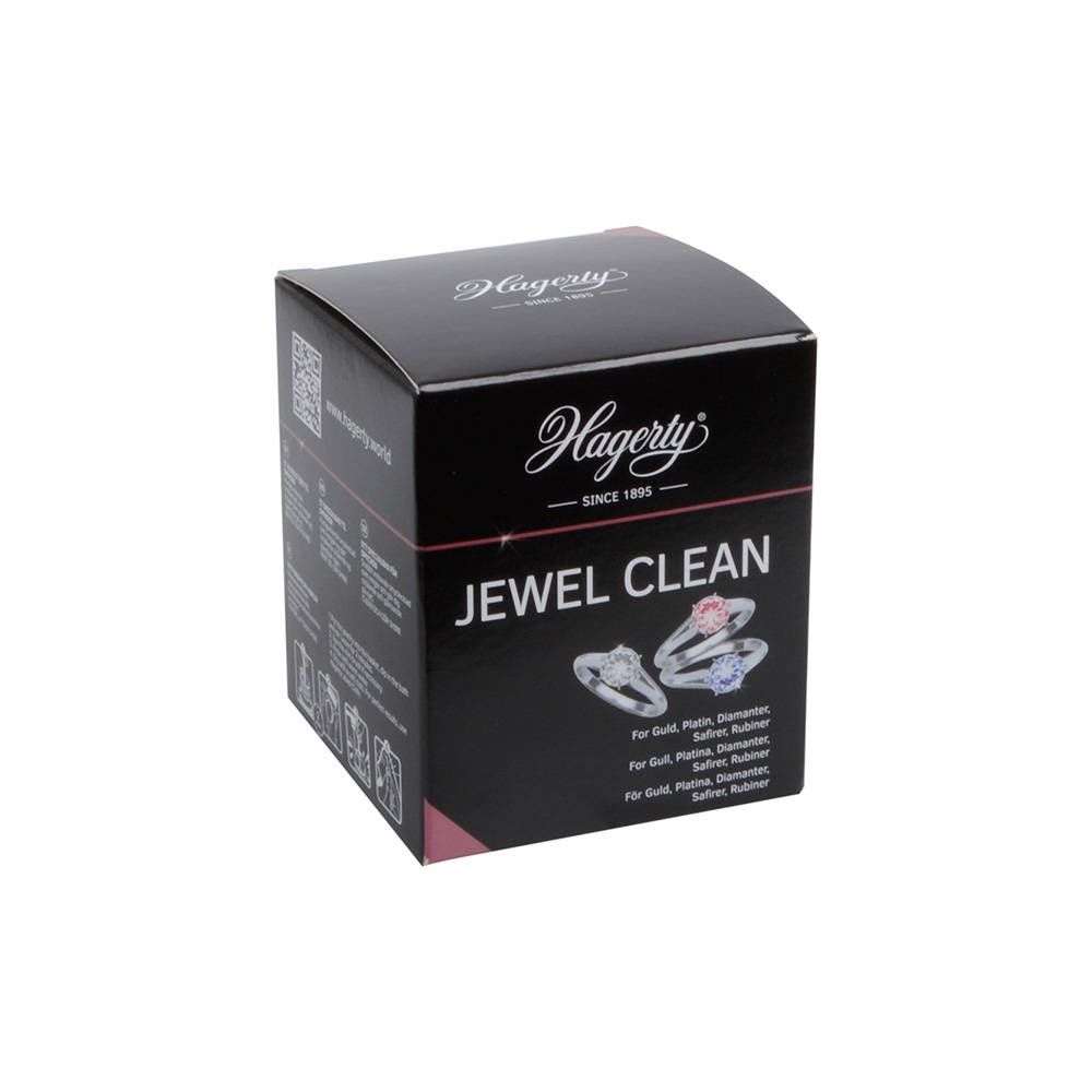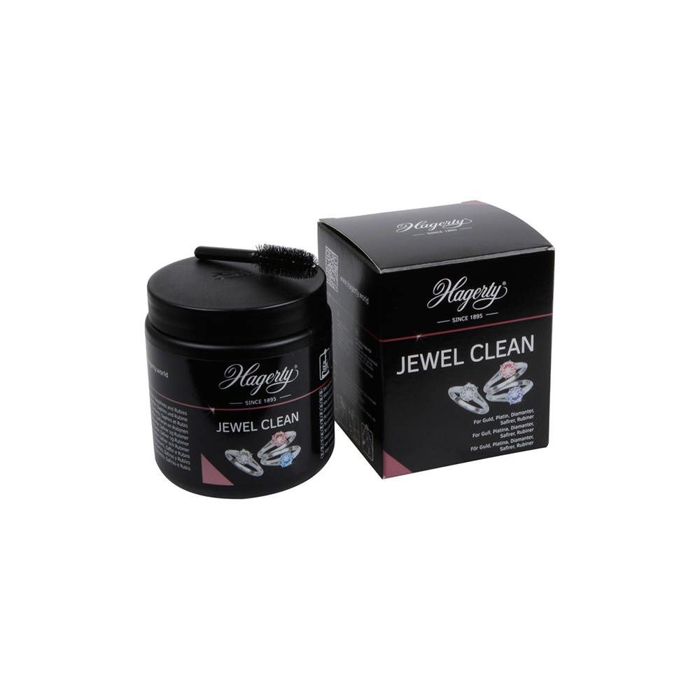 Hagerty Jewel Clean is a dip solution for thoroughly cleaning and refreshing gold and platinum jewelry, as well as jewelry with diamonds and other hard gemstones. The special formula removes tarnish and grease residue, restoring the shine and sparkle of your jewelry. This cleaning solution is ideal for rings, earrings, pendants, and bracelets that are worn daily and have become somewhat dull. Jewel Clean works quickly and is easy to use, so your jewelry will be fresh and radiant again in just a few steps. How do you use Hagerty Jewel Clean?Place your gold or platinum jewelry in the included strainer.Immerse the strainer in the solution for a few seconds (approximately 5–10 seconds).Remove the jewelry and rinse it thoroughly with lukewarm water.Dry the jewelry thoroughly with a soft, lint-free cloth. For the best results, polish your jewelry after the dip with the Hagerty Jewel Cloth for gold and platinum or our own __KEEP_JEWEELSTORE__ jewelry polishing cloth. This combines a deep clean with a beautiful, streak-free shine. Always use Hagerty products in a well-ventilated area and preferably wear gloves while cleaning. Carefully read the safety instructions on the packaging before use.