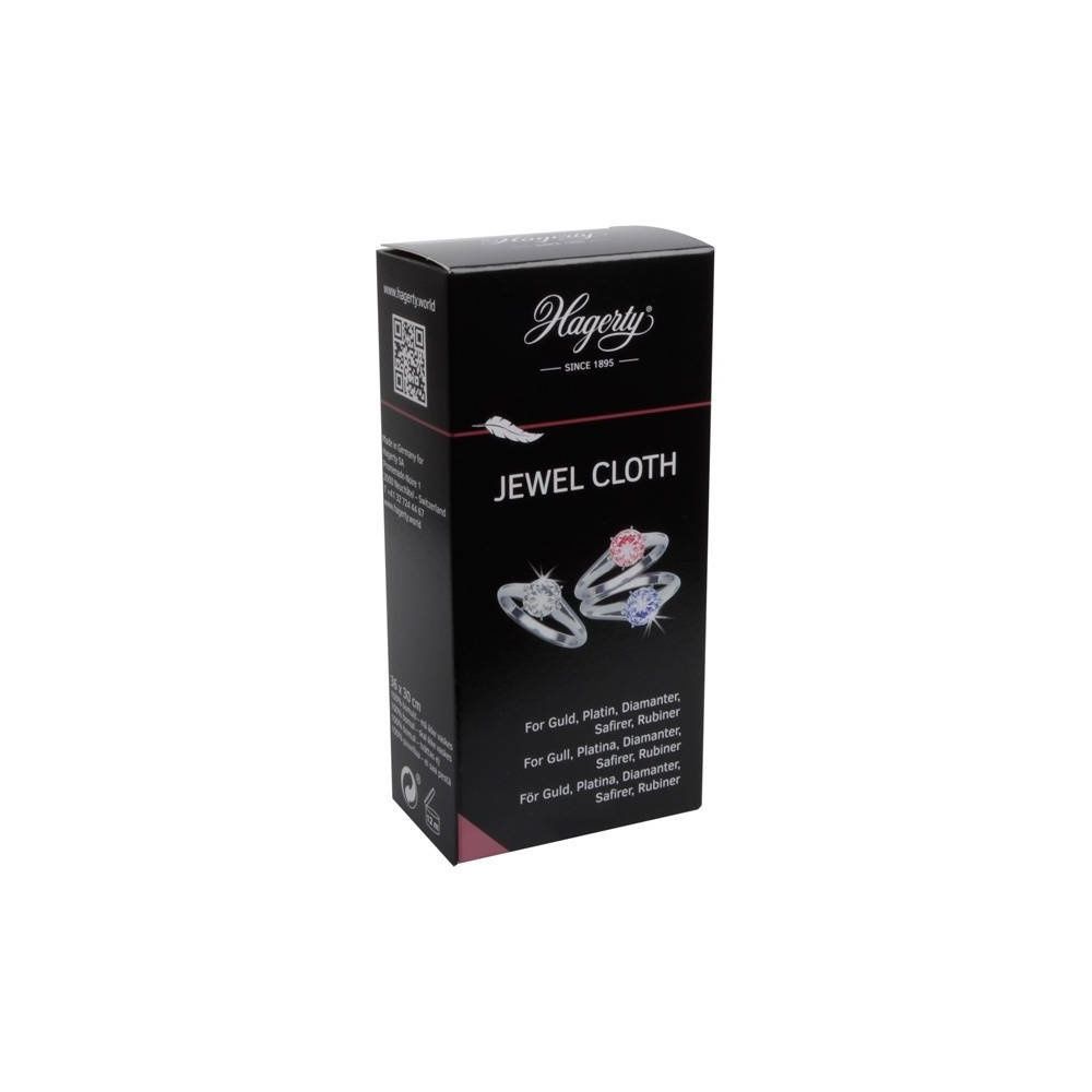 The Hagerty Jewel Cloth is a specially treated polishing cloth for cleaning and refreshing gold and platinum jewelry, as well as jewelry with diamonds, sapphires, and rubies. Its impregnated formula removes tarnish and dull spots, restoring your jewelry to its original shine. The cloth is ready to use and easy to use: you don't need any additional cleaning products for daily maintenance. Ideal for quickly polishing rings, bracelets, necklaces, and earrings with precious stones before wearing them. How to use the Hagerty Jewel Cloth:Gently but thoroughly polish your jewelry to remove tarnish and light discoloration.For hard-to-reach areas, you can combine the cloth with a cleaning product, such as Hagerty Jewel Clean, for a deeper clean.Use the cloth in a well-ventilated area.Wear gloves when working with Hagerty products.Do not wash the cloth: washing will destroy the special treatment.Replace the cloth if it is heavily discolored or noticeably worn.The Hagerty Jewel Cloth is ideal for regularly caring for your gold and platinum jewelry with gemstones. With just a few movements, you can restore your jewelry's beautiful shine without any complicated steps.