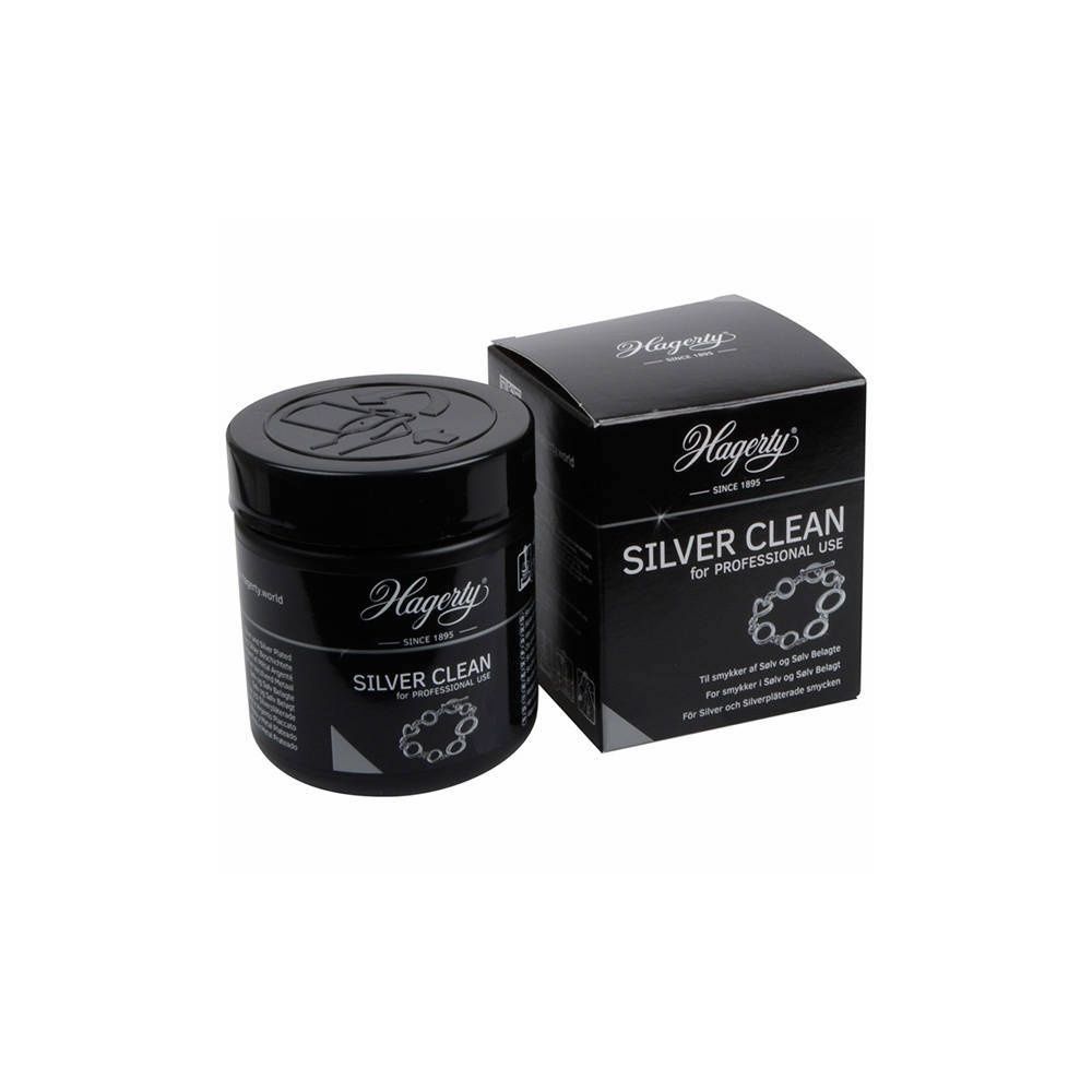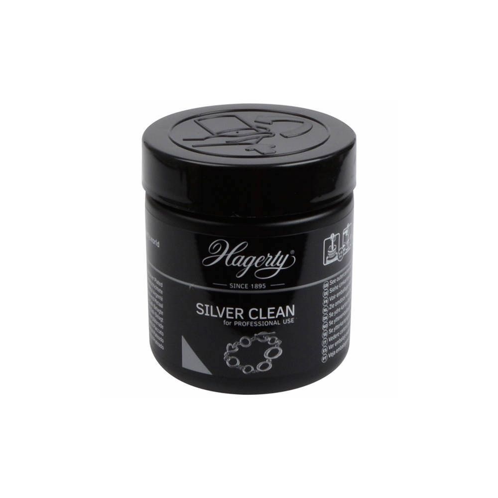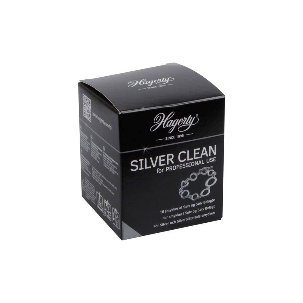 Hagerty Silver Clean is a dip bath for quickly cleaning and refreshing silver and silver-plated jewelry. The special formula removes black deposits (oxidation) and restores the original silver shine. Ideal for rings, bracelets, necklaces, and earrings that have become somewhat dull through wear. This cleaning product is only suitable for silver or silver-plated jewelry. Hagerty Silver Clean is not suitable for pearls, artificially oxidized silver (blackened silver), or jewelry with soft gemstones. How to use Hagerty Silver Clean:Place your jewelry in the included strainer or basket.Immerse the basket in the bath and move it briefly back and forth.Let the jewelry soak for a short time (a few seconds, or a little longer for stubborn deposits, according to the packaging).For heavily soiled or deeply engraved areas, use a soft sponge dipped in the product.Remove the jewelry from the bath and rinse it immediately with lukewarm water.Dry the jewelry thoroughly with a soft, lint-free cloth.For an extra beautiful, streak-free shine, polish your jewelry after dipping with the Hagerty Silver Cloth or our own Juweelwinkel jewelry polishing cloth. This combines a deep clean with a beautiful finish. Always use Hagerty products in a well-ventilated area and preferably wear gloves while cleaning. Carefully read the safety instructions on the packaging before use.