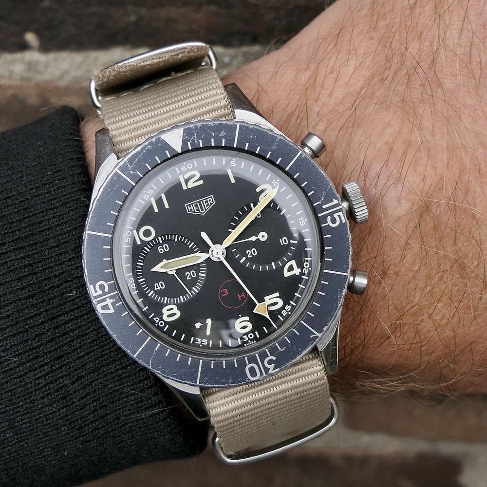 Heuer Bundeswehr Fly-back 1550SG; Vintage chronograph men's watch
