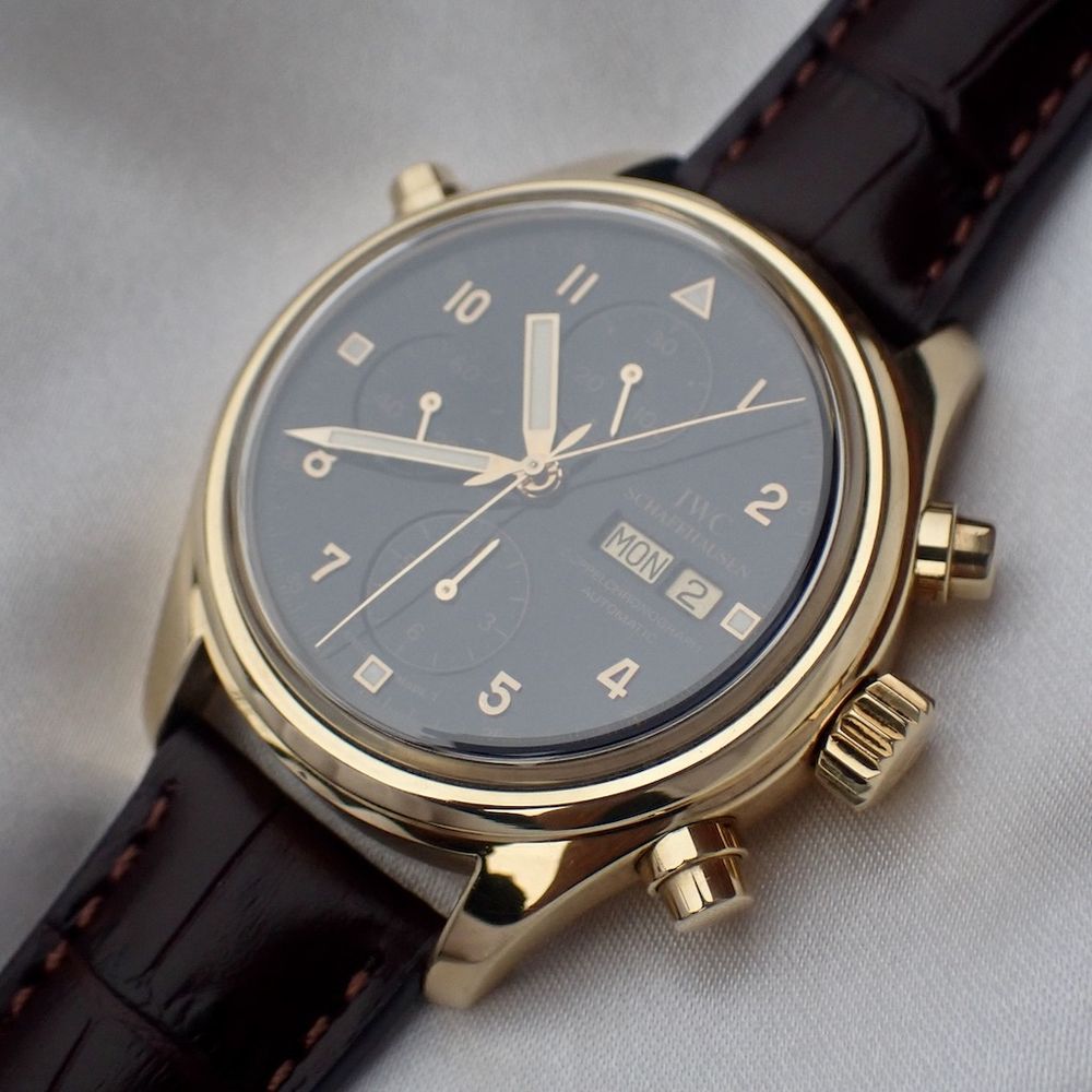 IWC Pilot Double Chronograph; 18k. Men's watch with split seconds